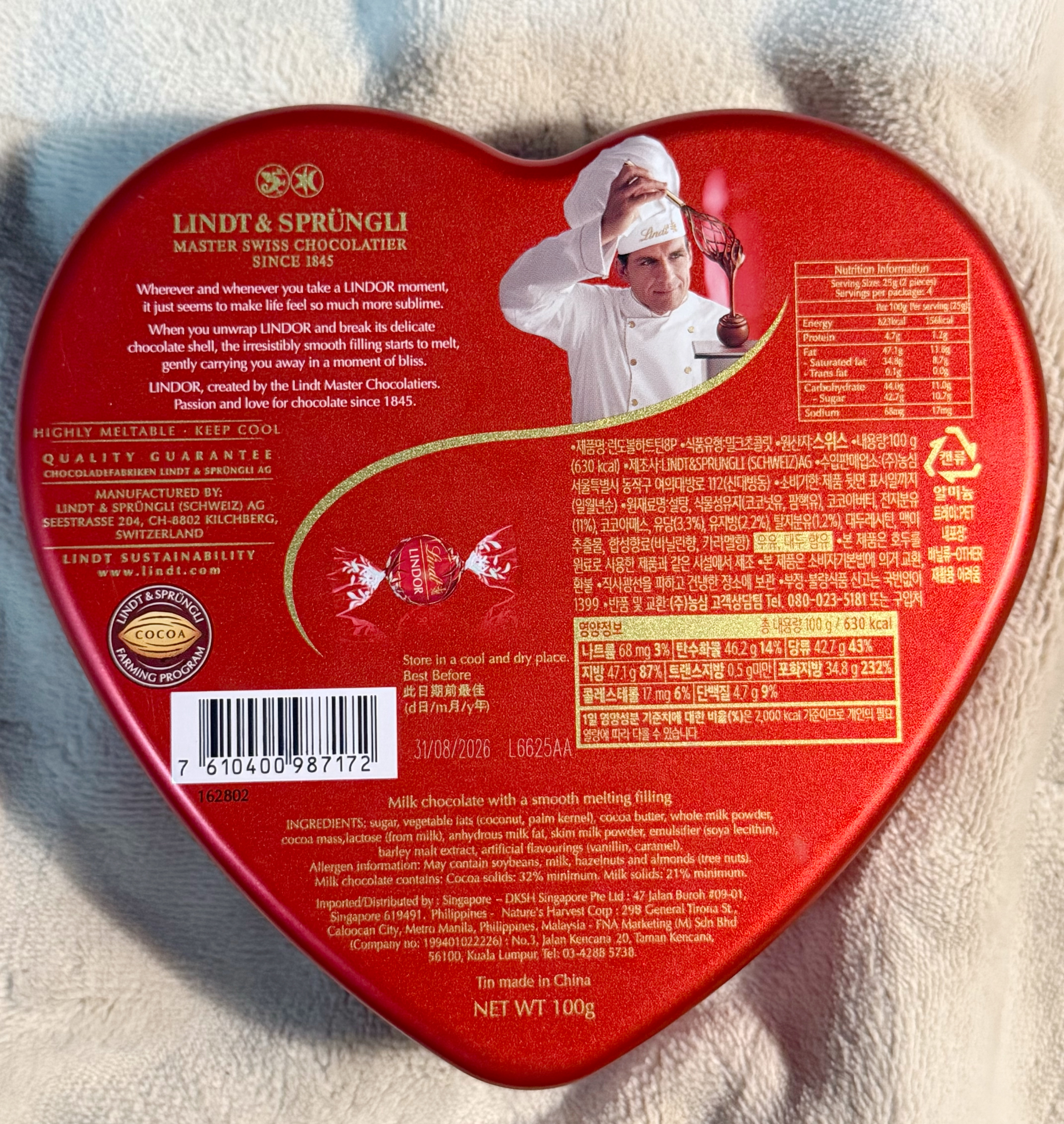 스위스 밀크초콜릿 린트 린도볼 하트틴 8p