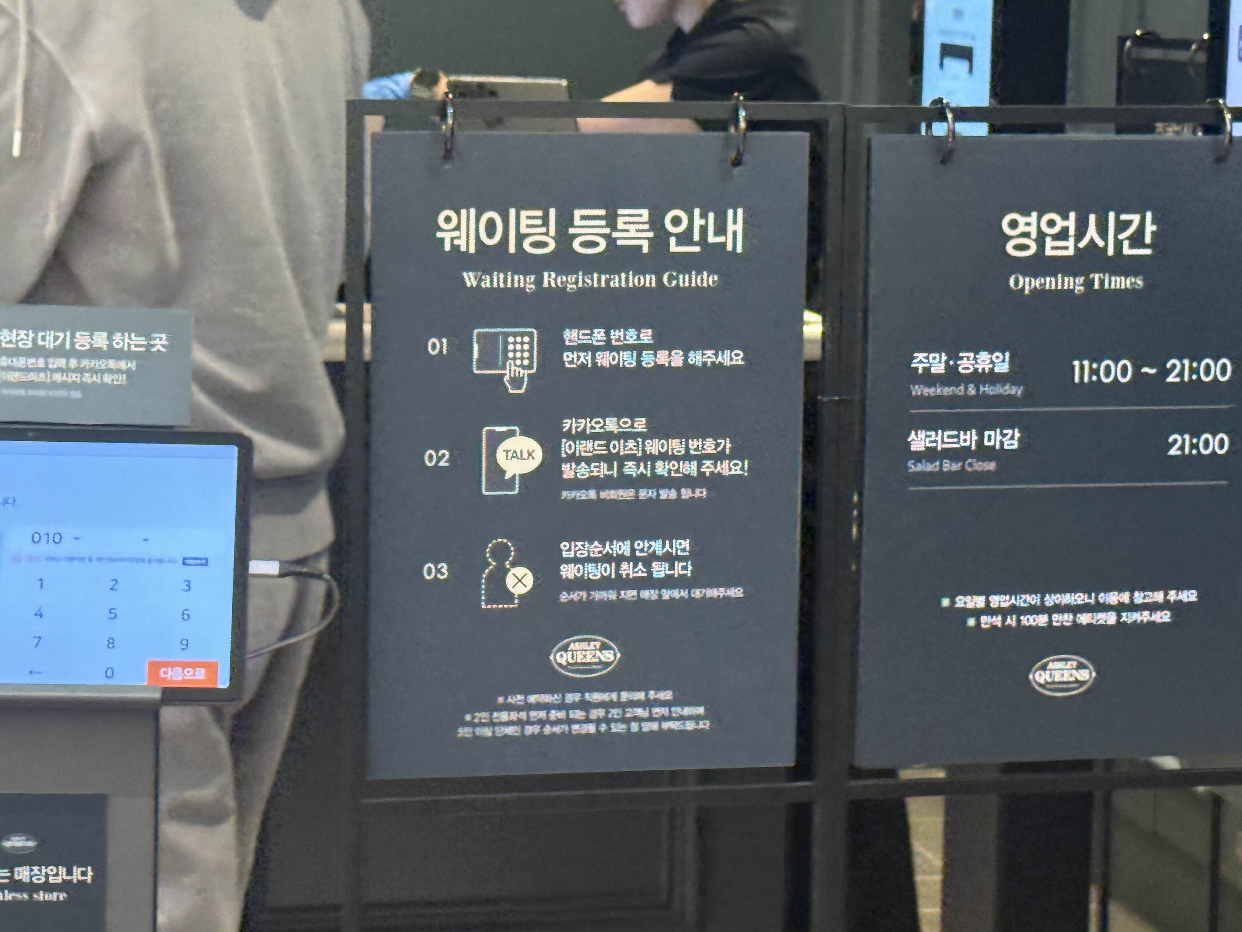 애슐리 퀸즈 매장 앞에