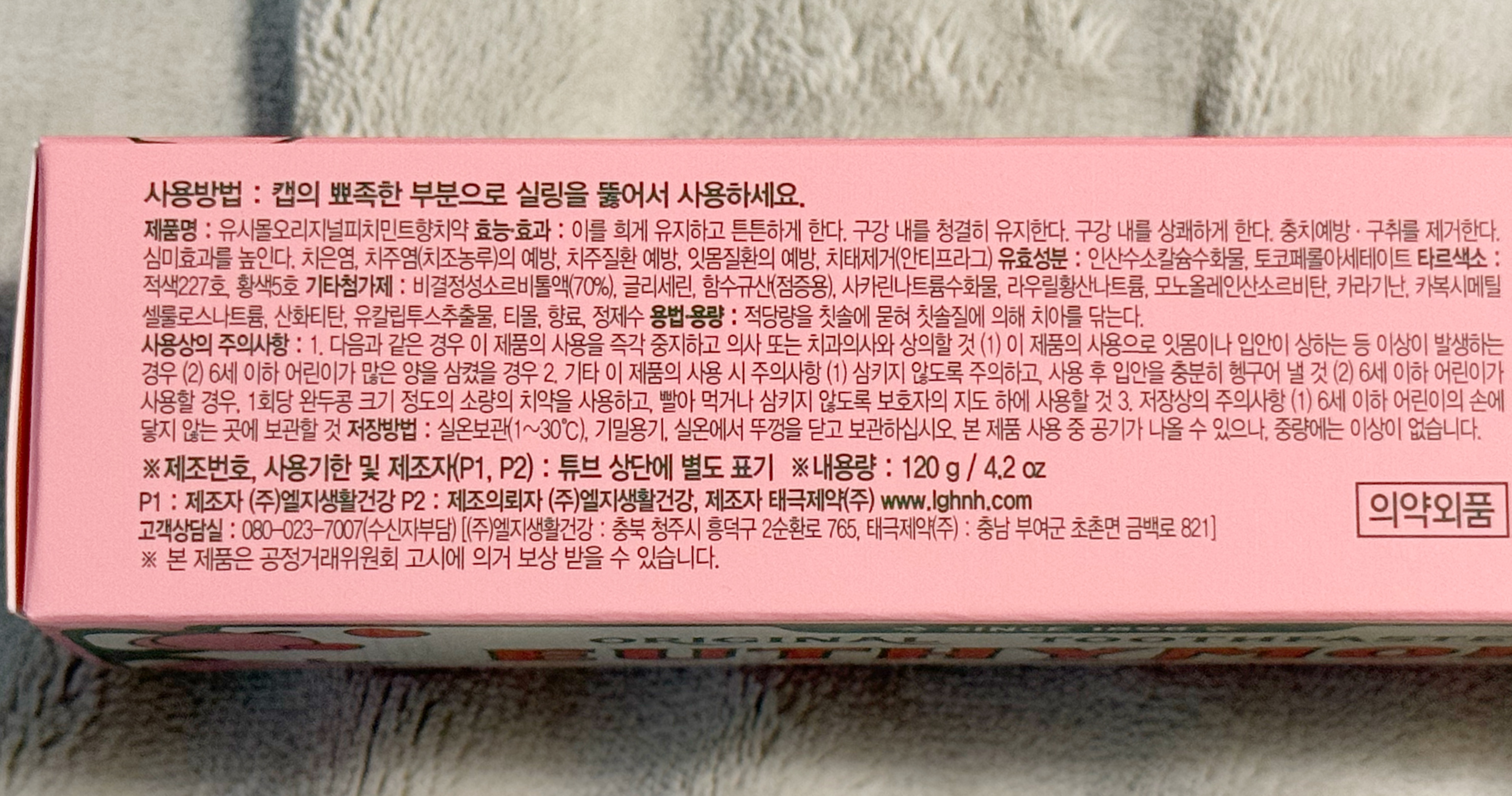 유시몰 오리지널 피치민트향 치약에