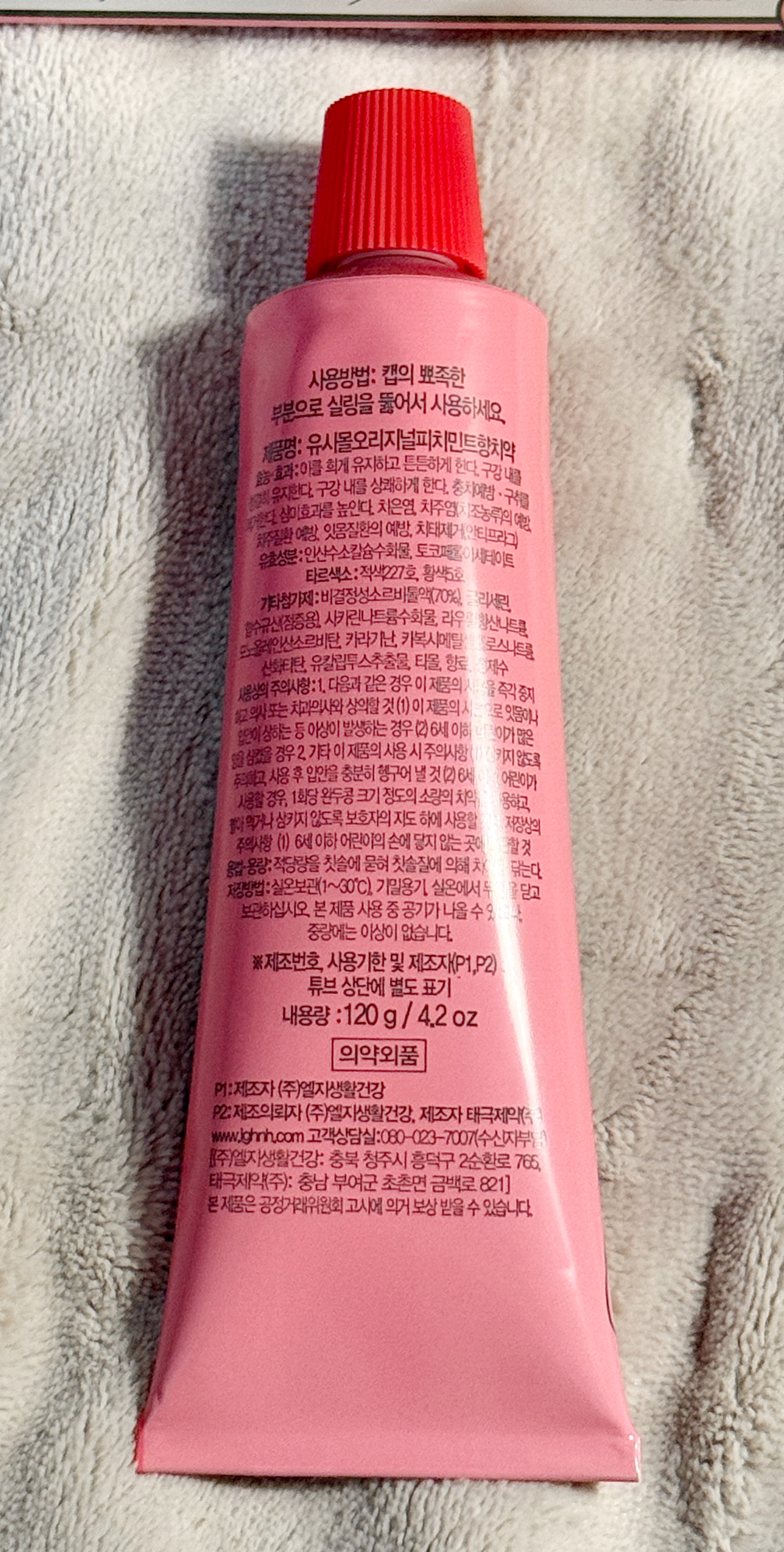 정식 제품명은 오리지널 피치민트향 치약.