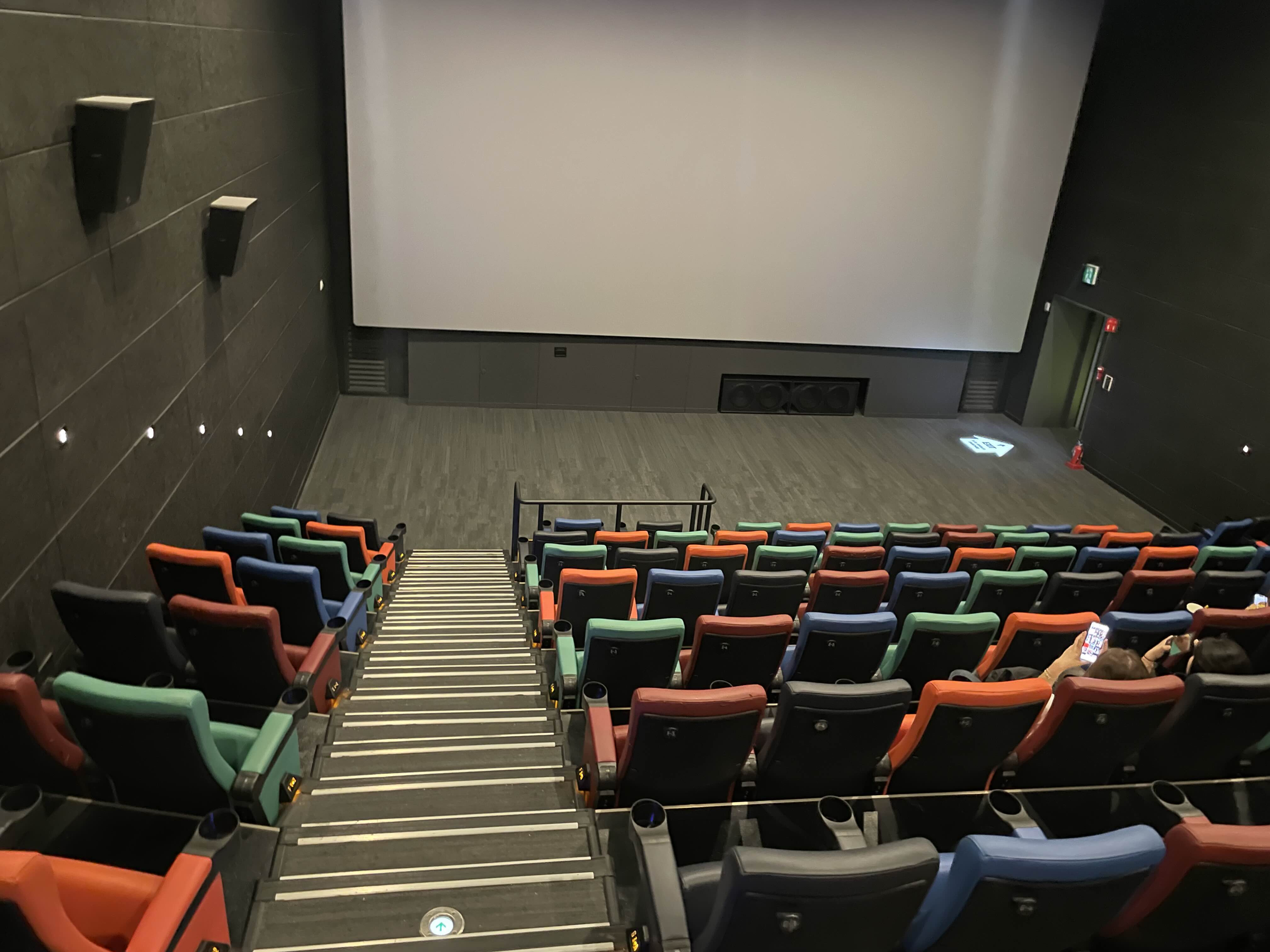 색색깔의 좌석이 눈에 띄었고 뭔가 아기자기한 느낌의 상영관이다.