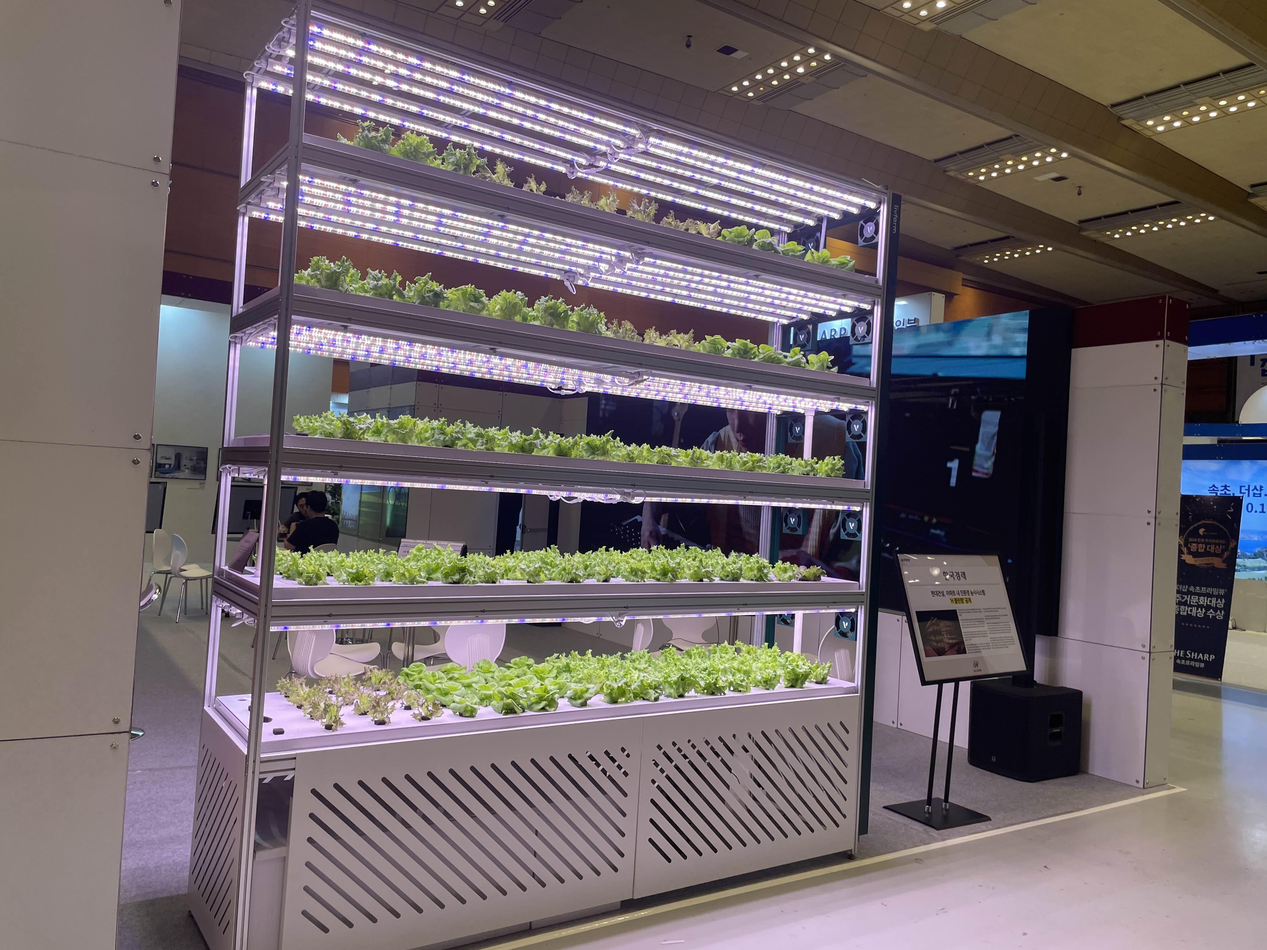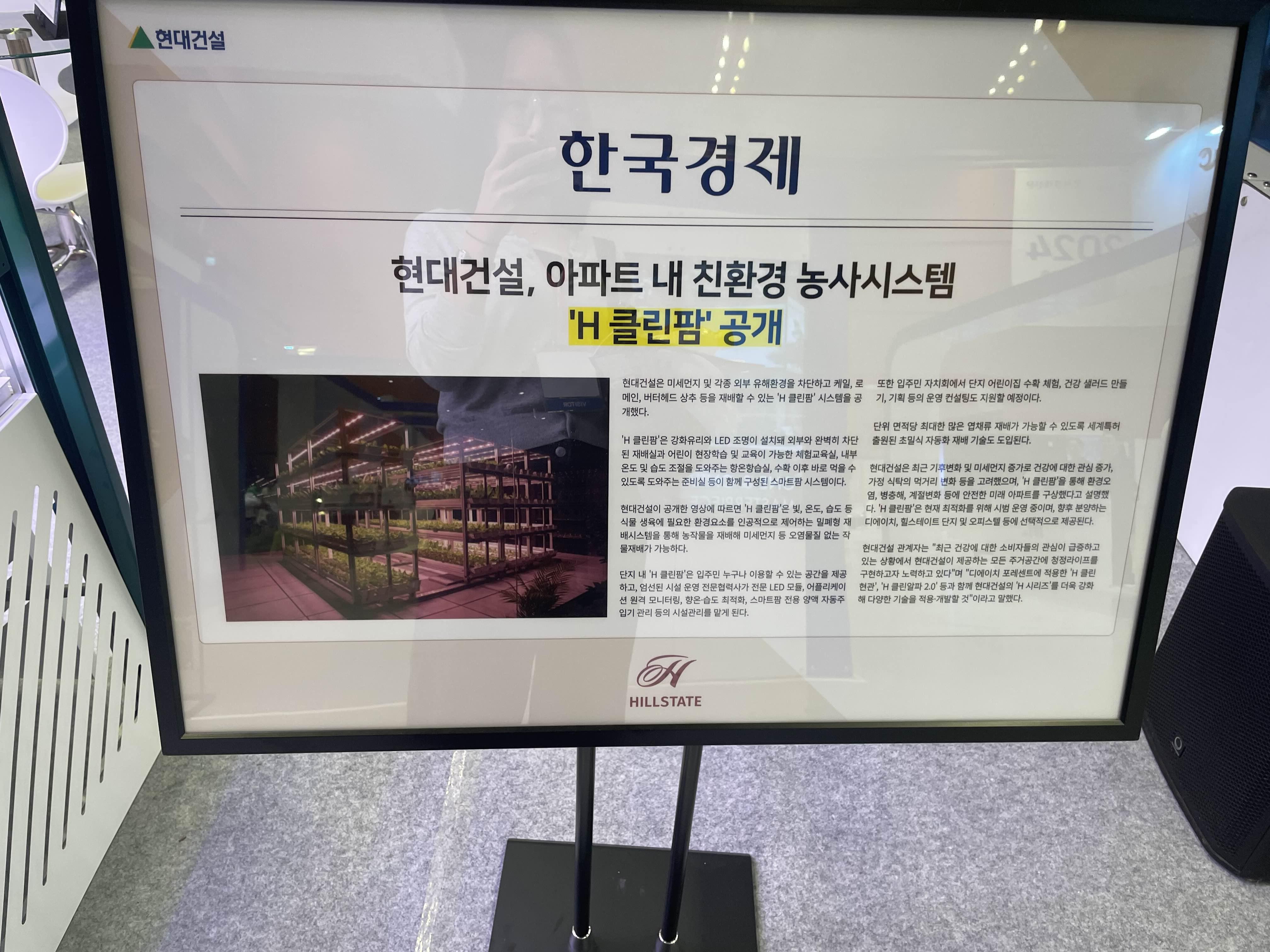 가는 길에 현대건설 부스에 신기한 것이 있어서 찍었다. 친환경 농사시스템 H 클린팜. 이제는 땅에서 키우지 않아도 되는 시대구나. 먼가 깔끔하고 정돈된 것이 정이 없는 느낌이긴 하다.