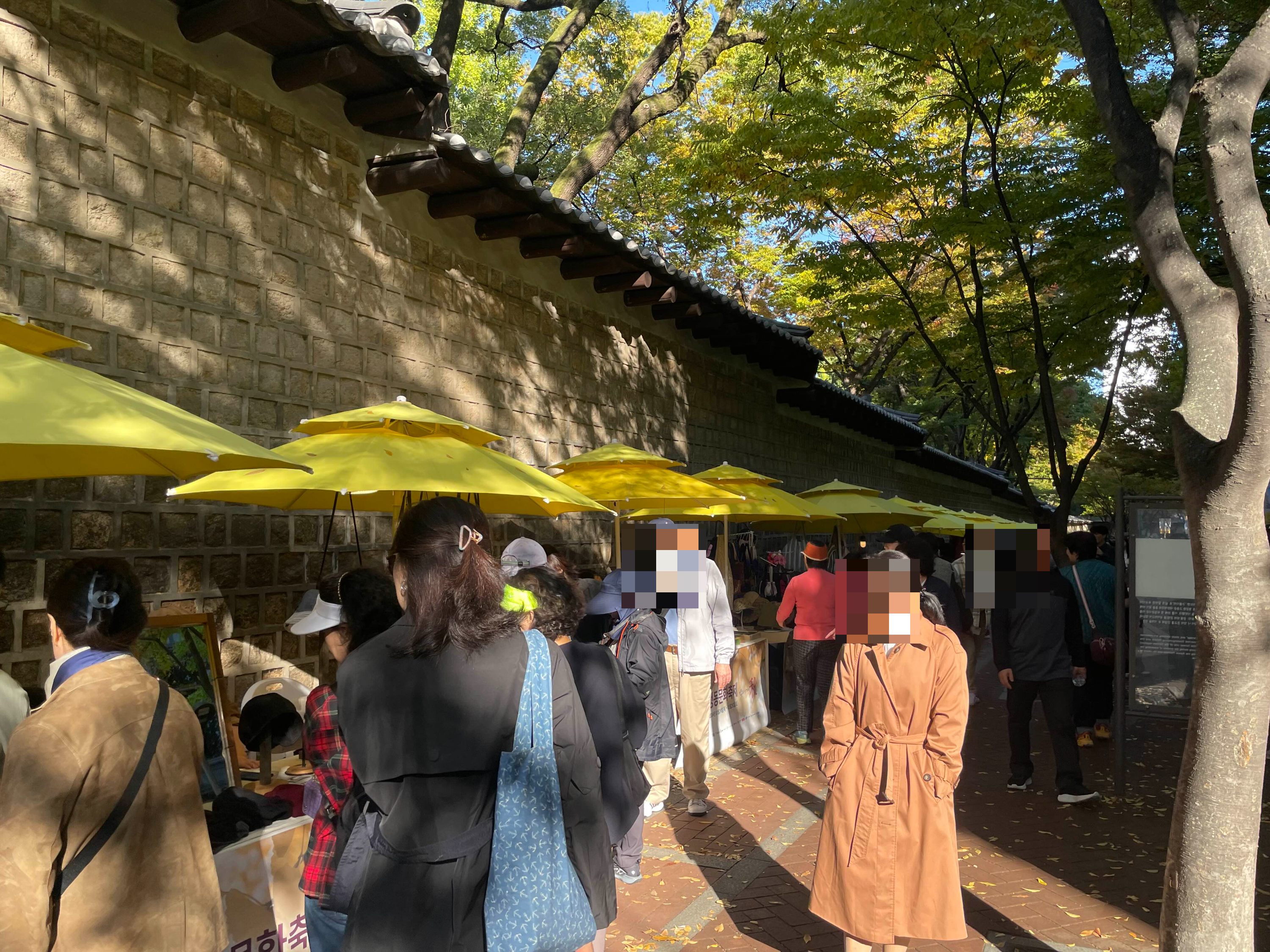 덕수궁 돌담길 앞에 노란 파라솔들이 줄지어 있었다. 단풍은 아직 덜 든 모습이지만 청명한 가을 기분을 만끽할 수 있었다.