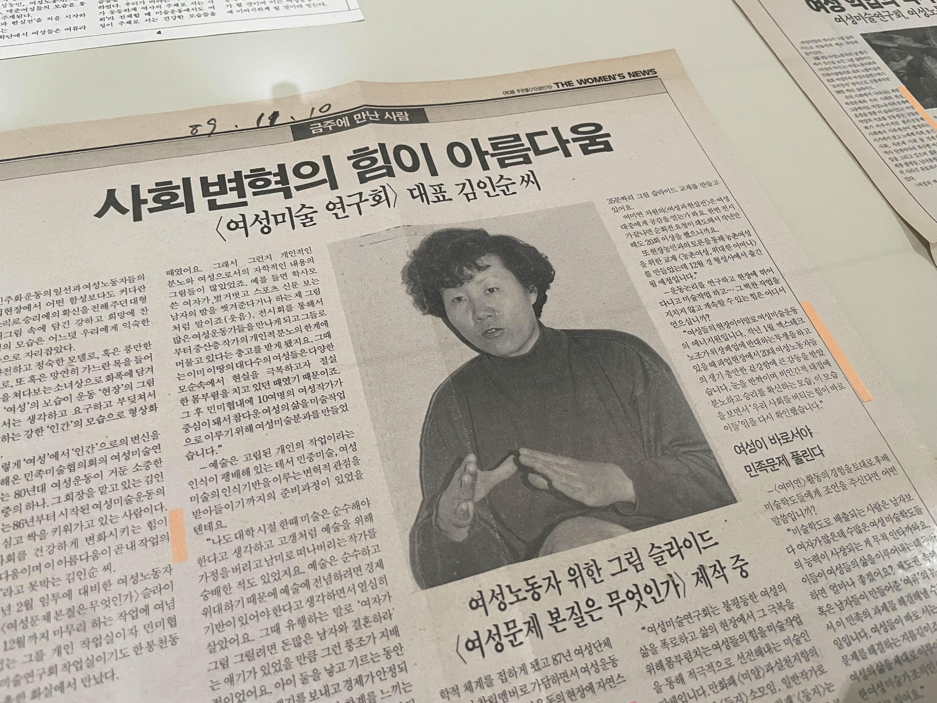 전시실 한 켠, 김인순 작가의 옛 자료들을 둘러볼 수 있는 공간이 있다.