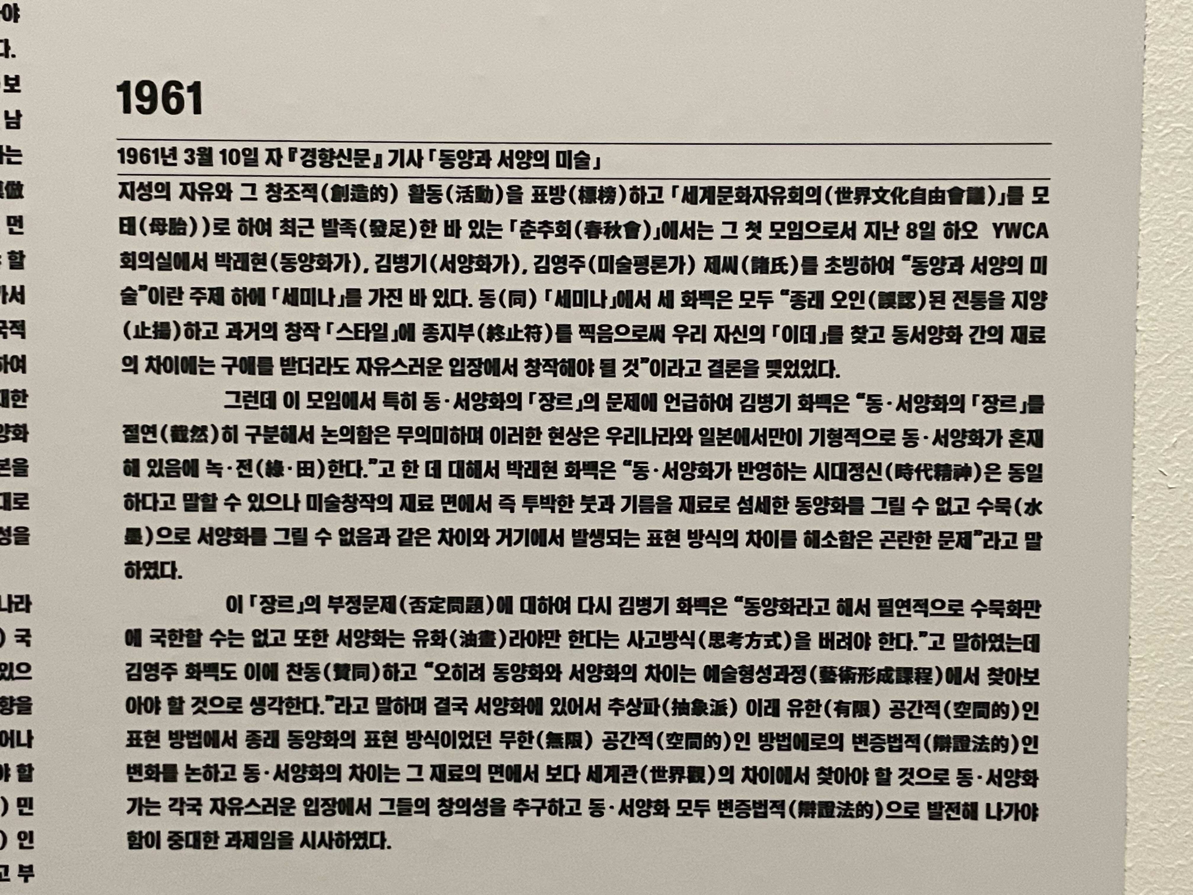 1961년 당시, 동양과 서양의 미술에 관한 기사 내용. 그 옛날에도 편견에 사로잡히지 않고 자유롭고자 하는 갈망이 있었고, 예술적 정신이 엄청 깨어있었다는 걸 알 수 있었다.