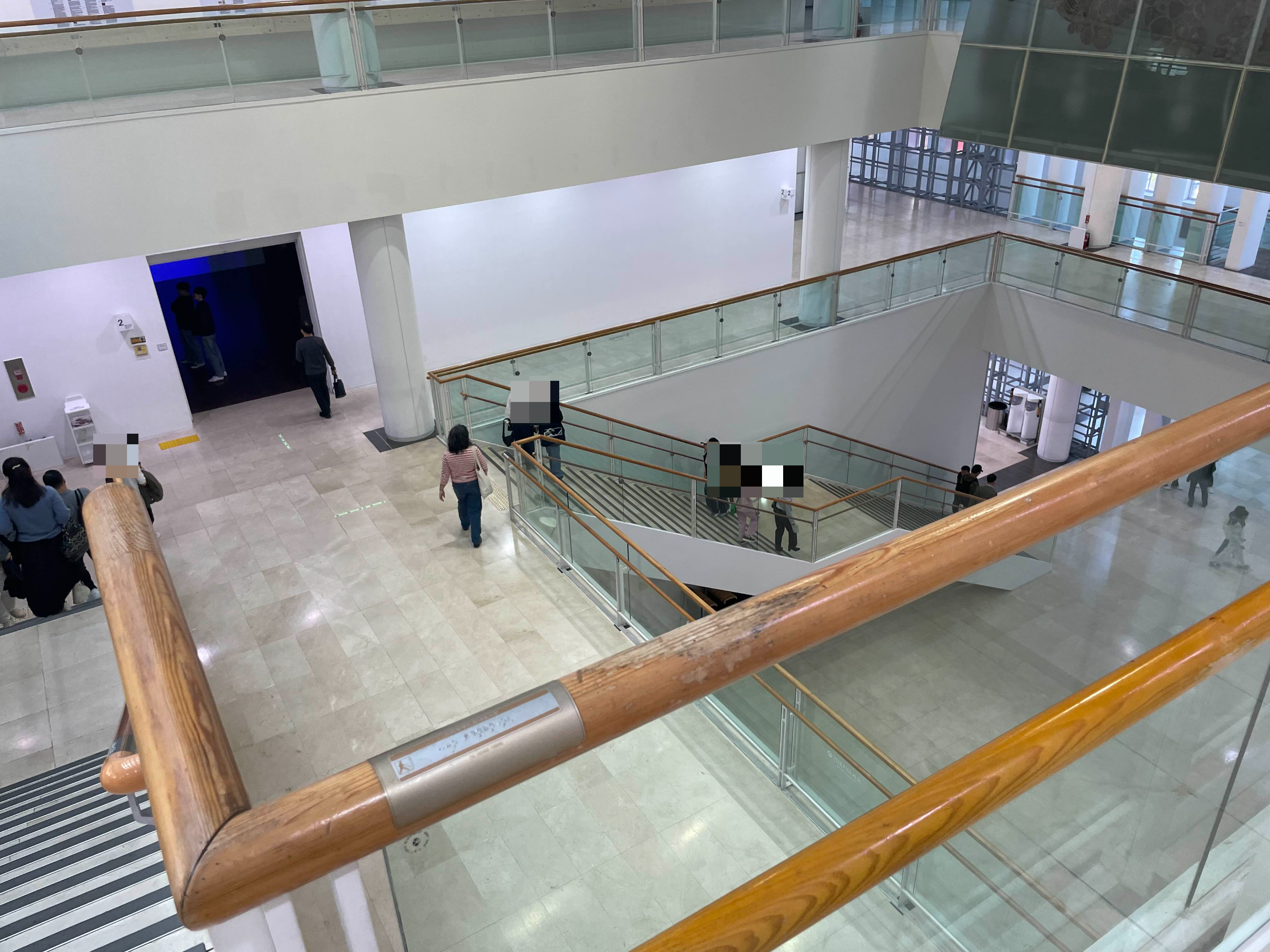 서울시립미술관 전시를 모두 관람하고 나가기 전에 마지막으로 창문 밖 구경 중.
