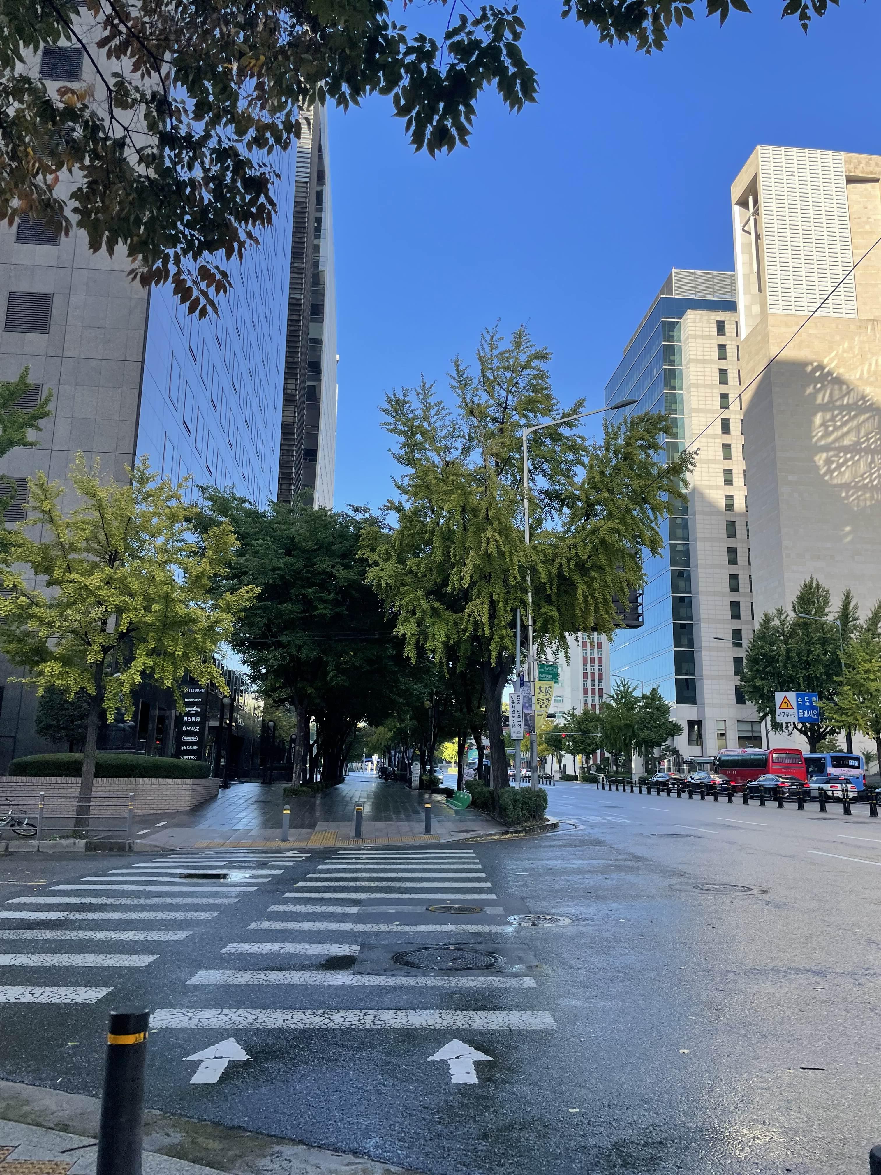 씨네큐브 영화관 가는 길! 전철 타고 광화문 6번 출구로 나와 걸으면 된다. 나와보니 비는 이미 지나간 후였고 날이 개고 있었다. 날이 맑고 상쾌하고 예쁜데 길에 아무도 없고 암튼 좋았다.