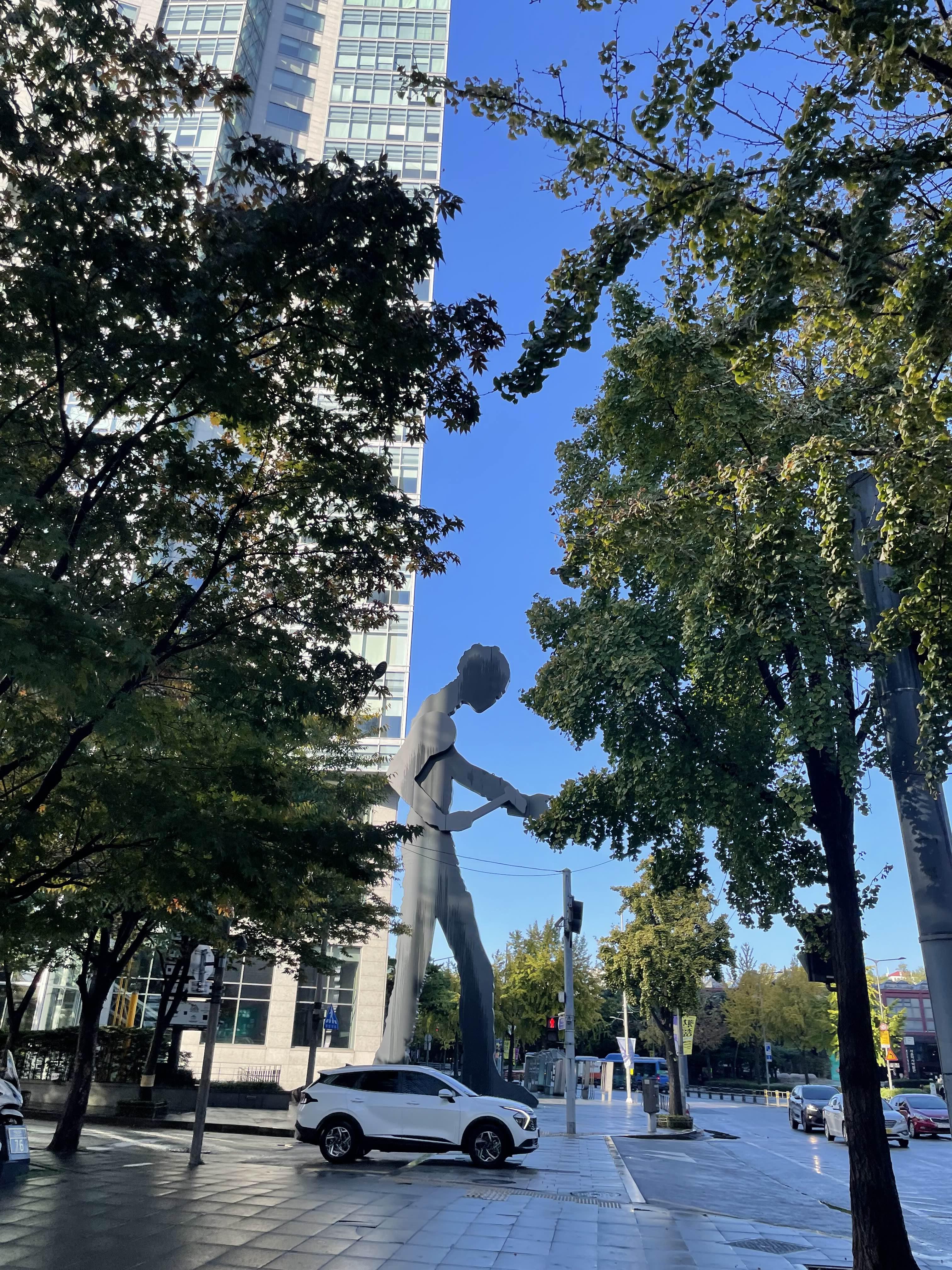 멀리서 그 유명한 해머링맨이 보이기 시작한다. 높이 22m 정도로 실제로 보면 엄청 거대하다. 미국의 조각가 조나단 보롭스키의 작품이라고 한다.