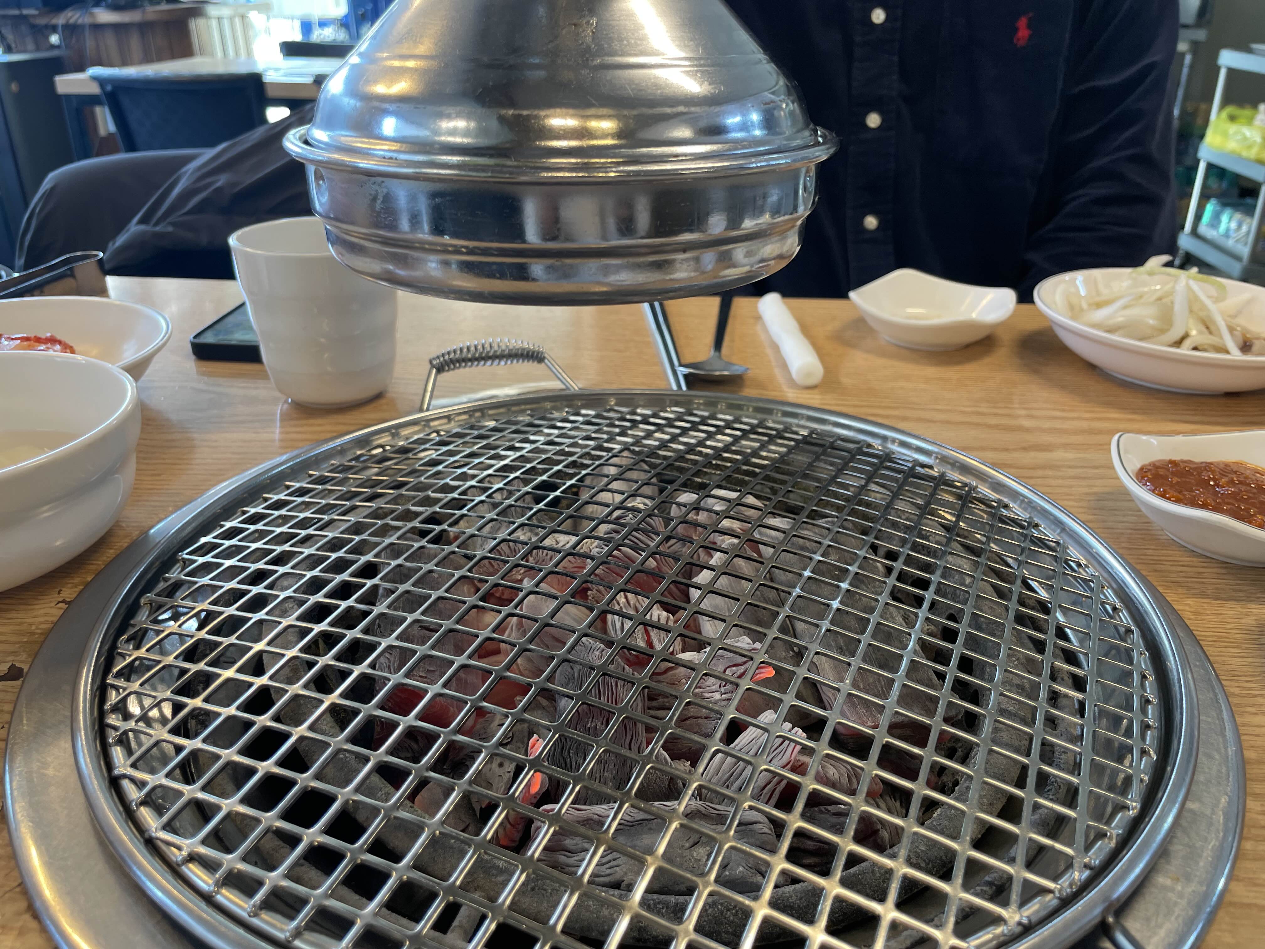고기를 구울 때는 싱싱한? 숯불을 사용해서 더욱 깊은 풍미를 느낄 수 있다. 아무래도 이 숯불이 토종한우정육식당의 비결인 것 같다. 이 숯불에 구워야지만 고기가 맛있어지는 듯.. 그런데 연기 빨아들이는 연통이 좋아서 그런지 확실히 고기냄새가 덜 배는게 맘에 든다.