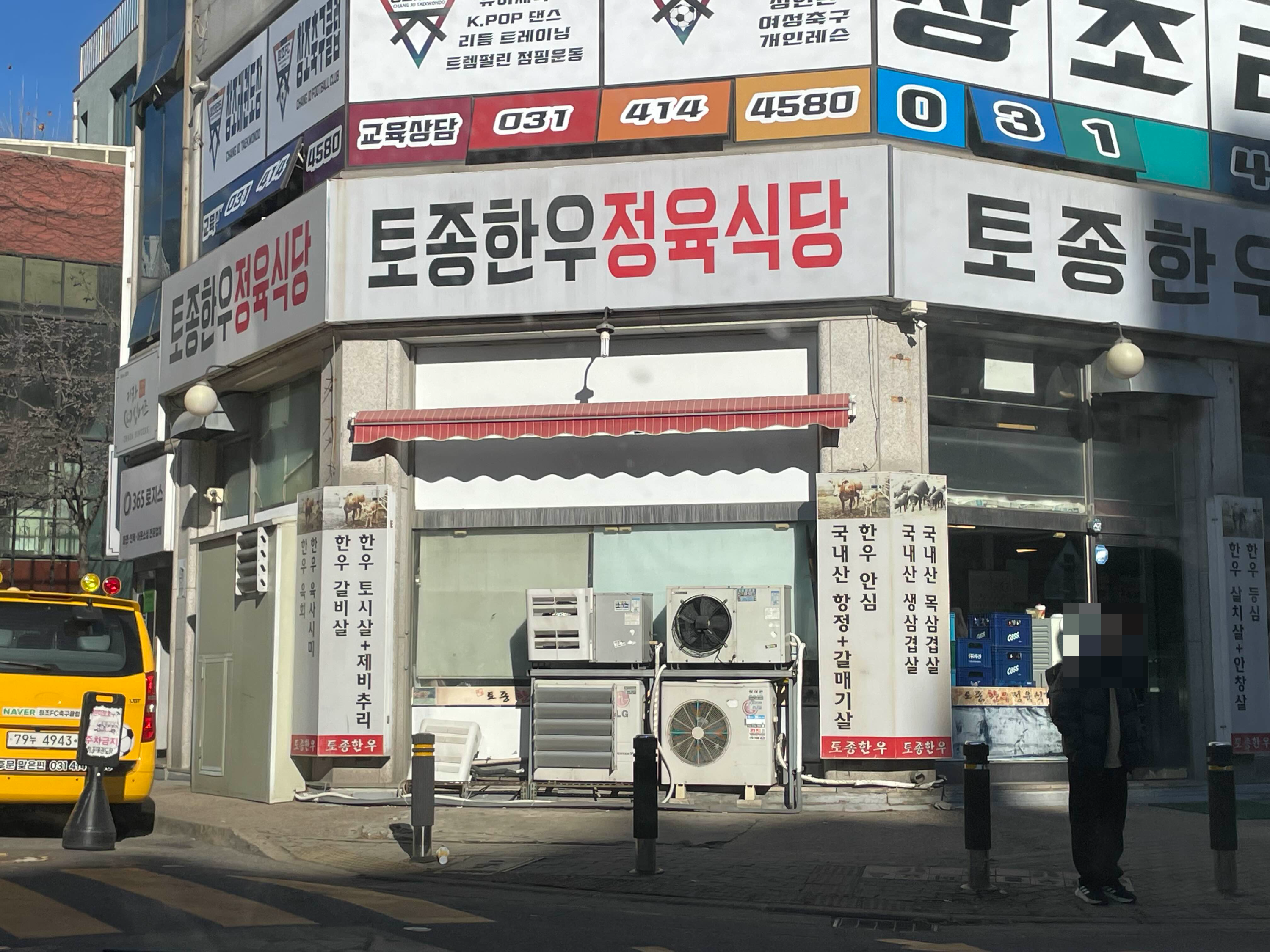 토종한우정육식당은 고잔역 2번출구에서 약 500m 정도 거리 건물의 모퉁이에 위치해 있다.