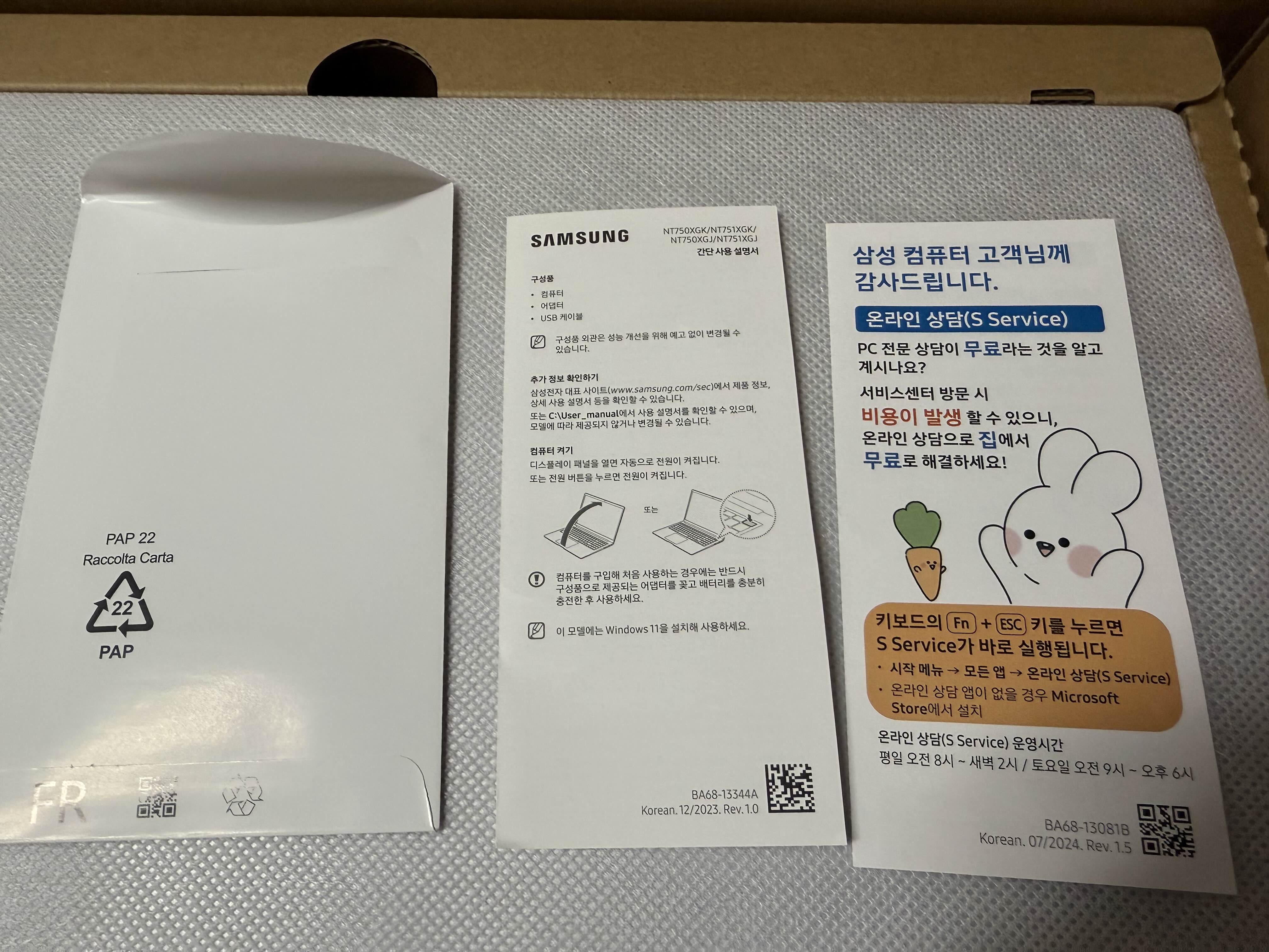 지금부터는 갤럭시북4 NT750XGJ-KP51S 구입 후 집으로 돌아와 언박싱 과정.
