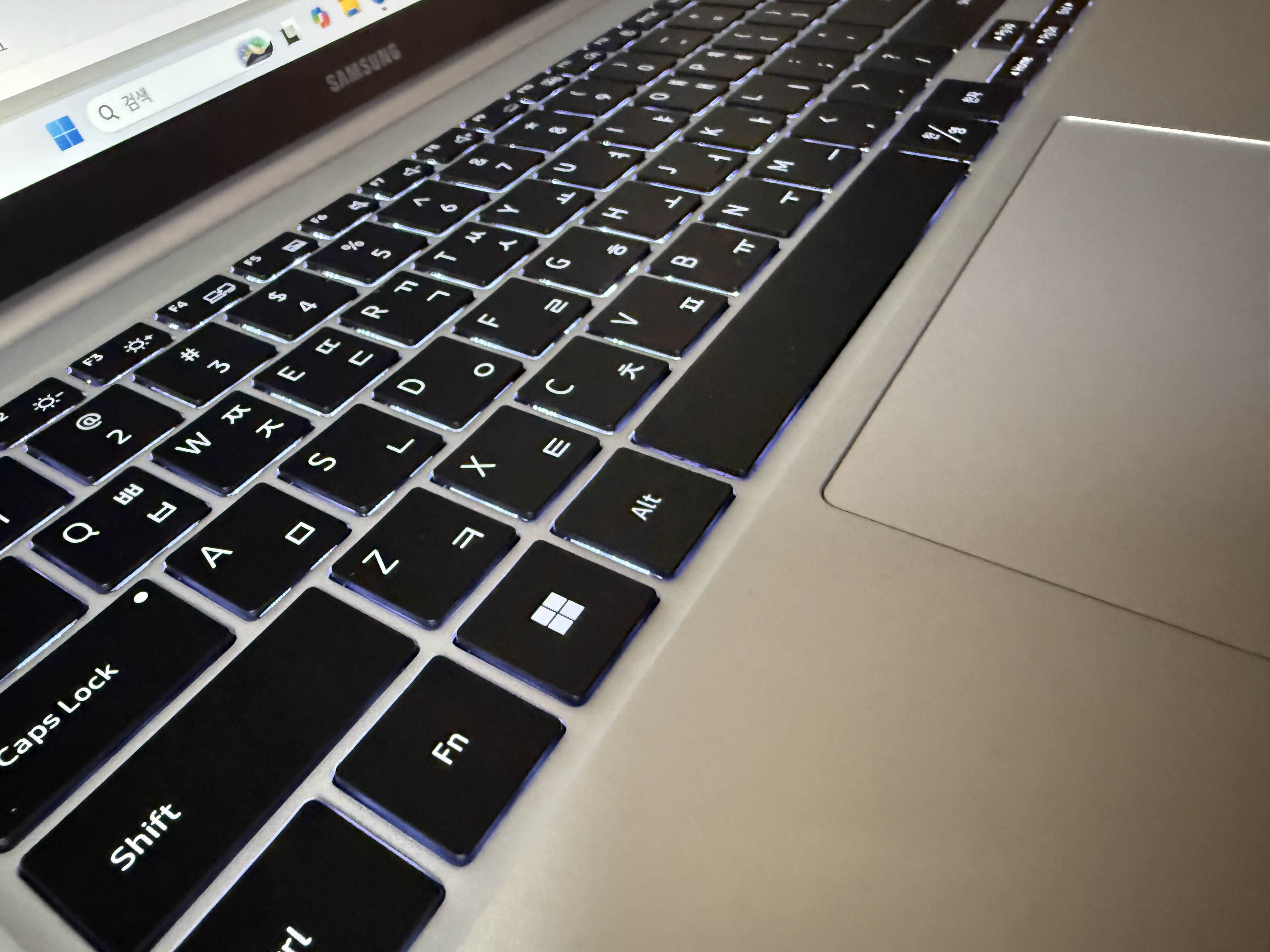 노트북 키보드 아래쪽에 불도 들어온다. 이전에 쓰던 노트북에서는 볼 수 없던 거라 신기하고 이뿌다.