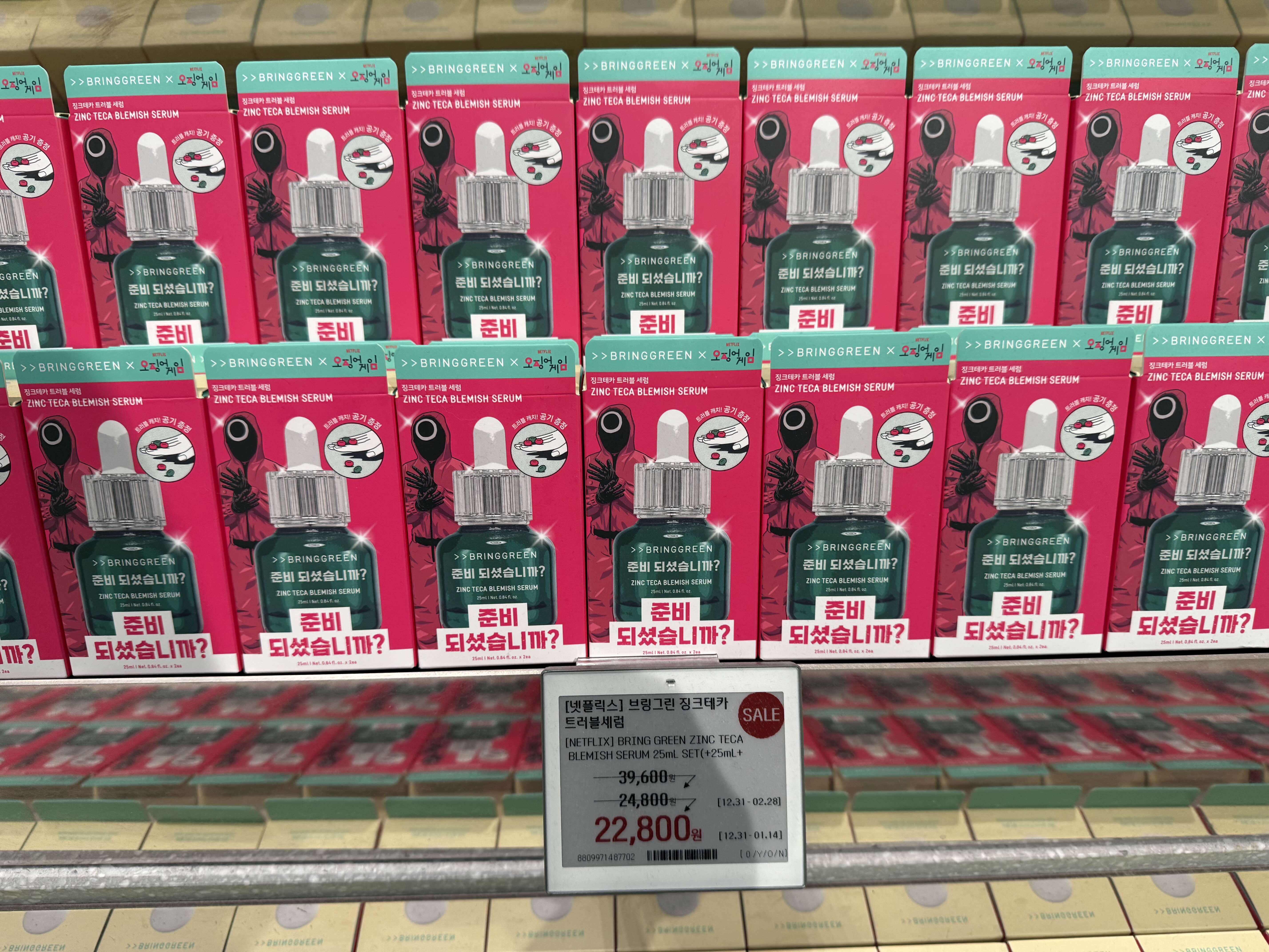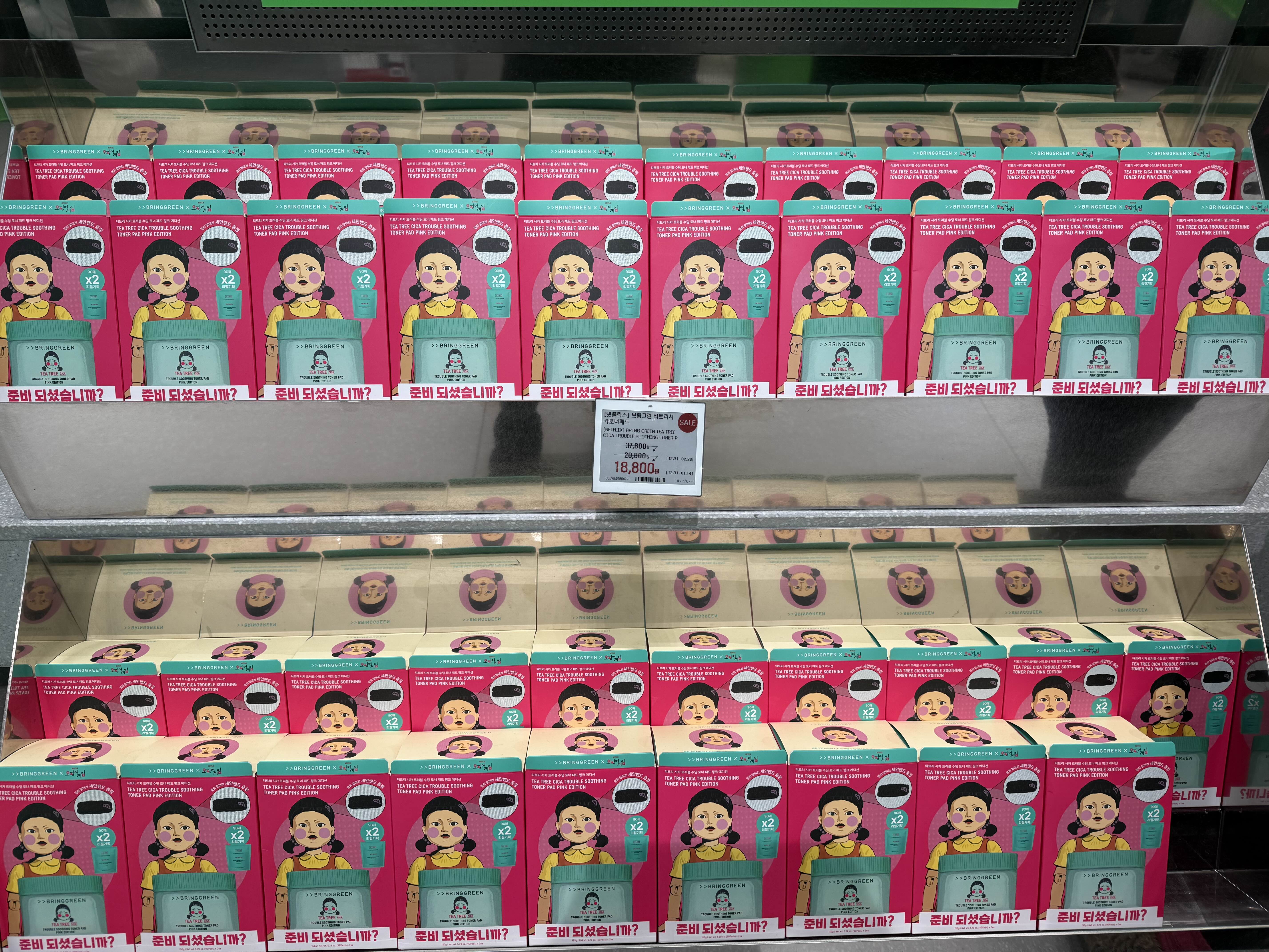 곳곳에 자주 보이는 오징어게임 콜라보 제품들. 조선미녀라는 브랜드의 선크림이 외국인들에게 인기라는데, 정작 난 처음 들어보는 브랜드라서 신기하다.