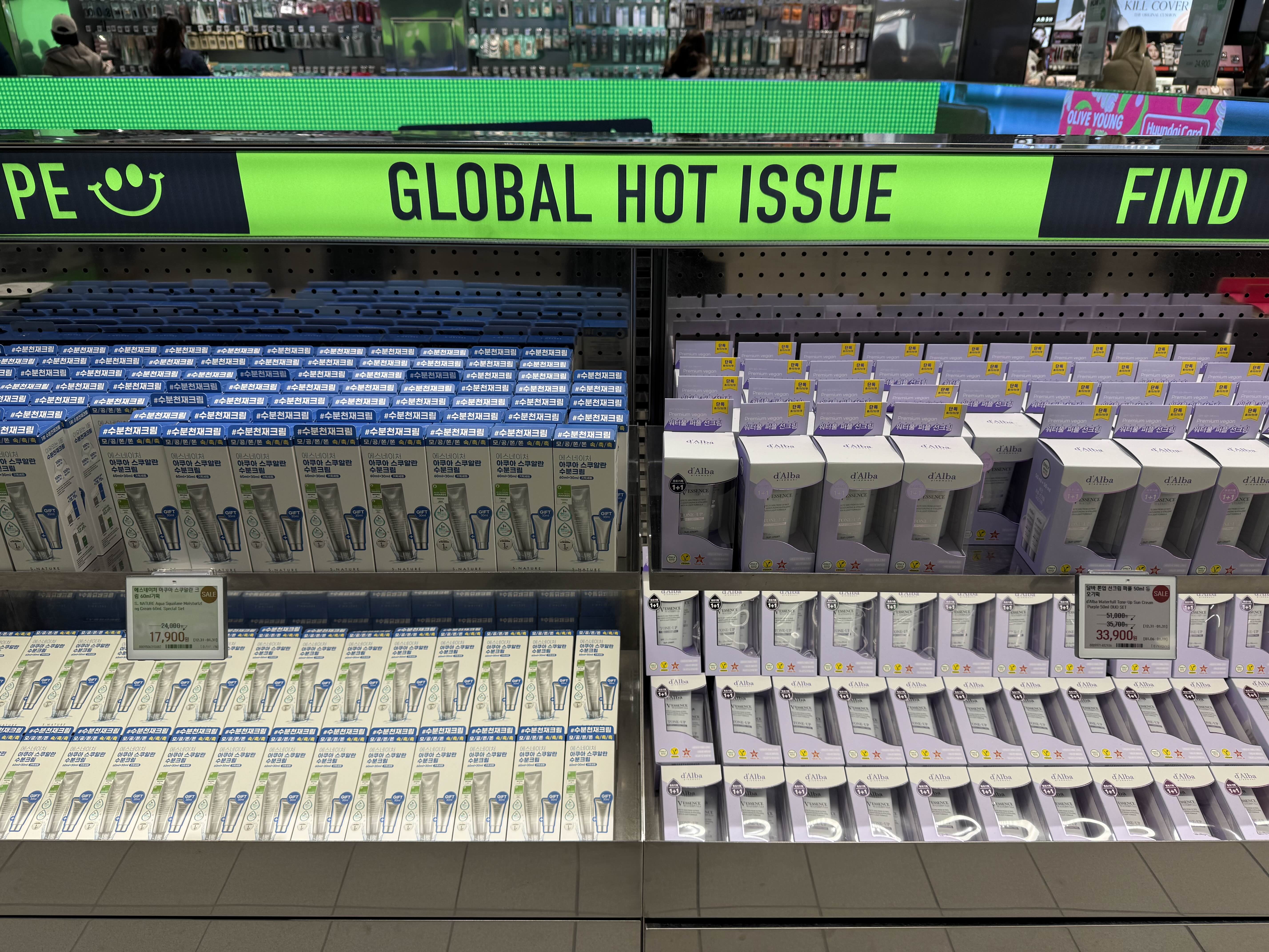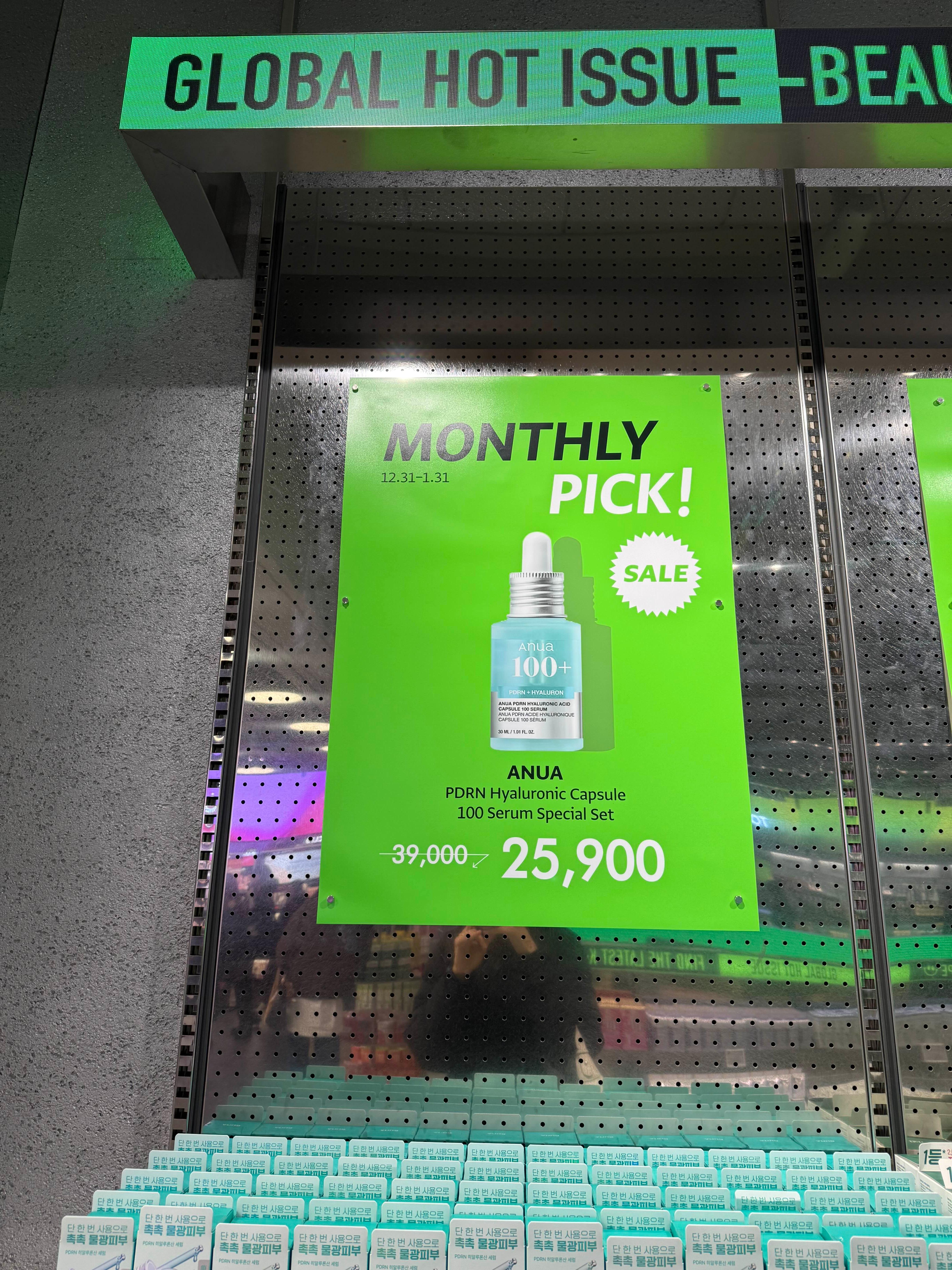 뷰센 치약 등등 글로벌 핫 아이템들도 모아서 진열해 놓았다. 특히나 많이 보였던 아누아 화장품. 아누아가 외국인들에게 정말 인기인가보다.