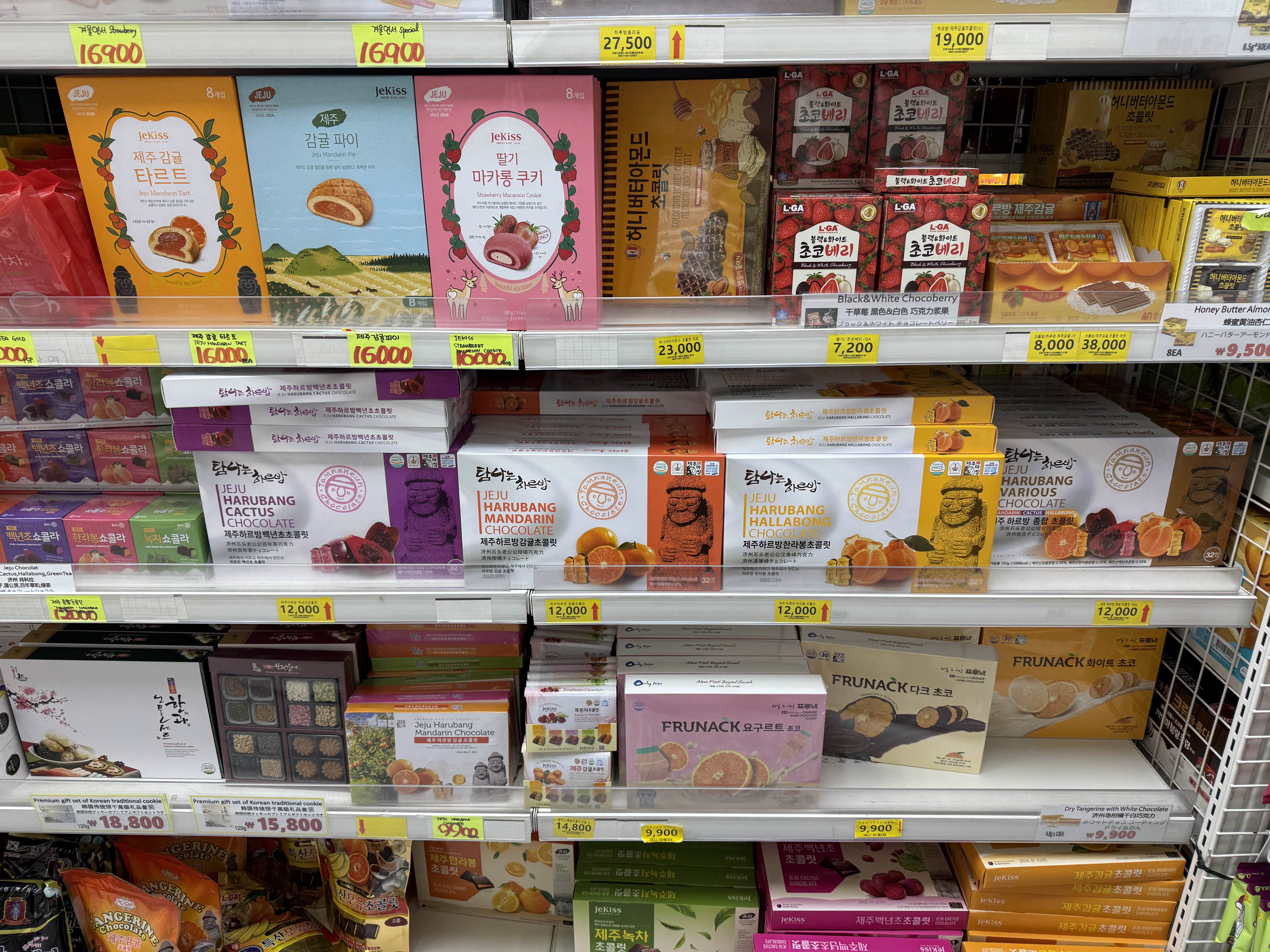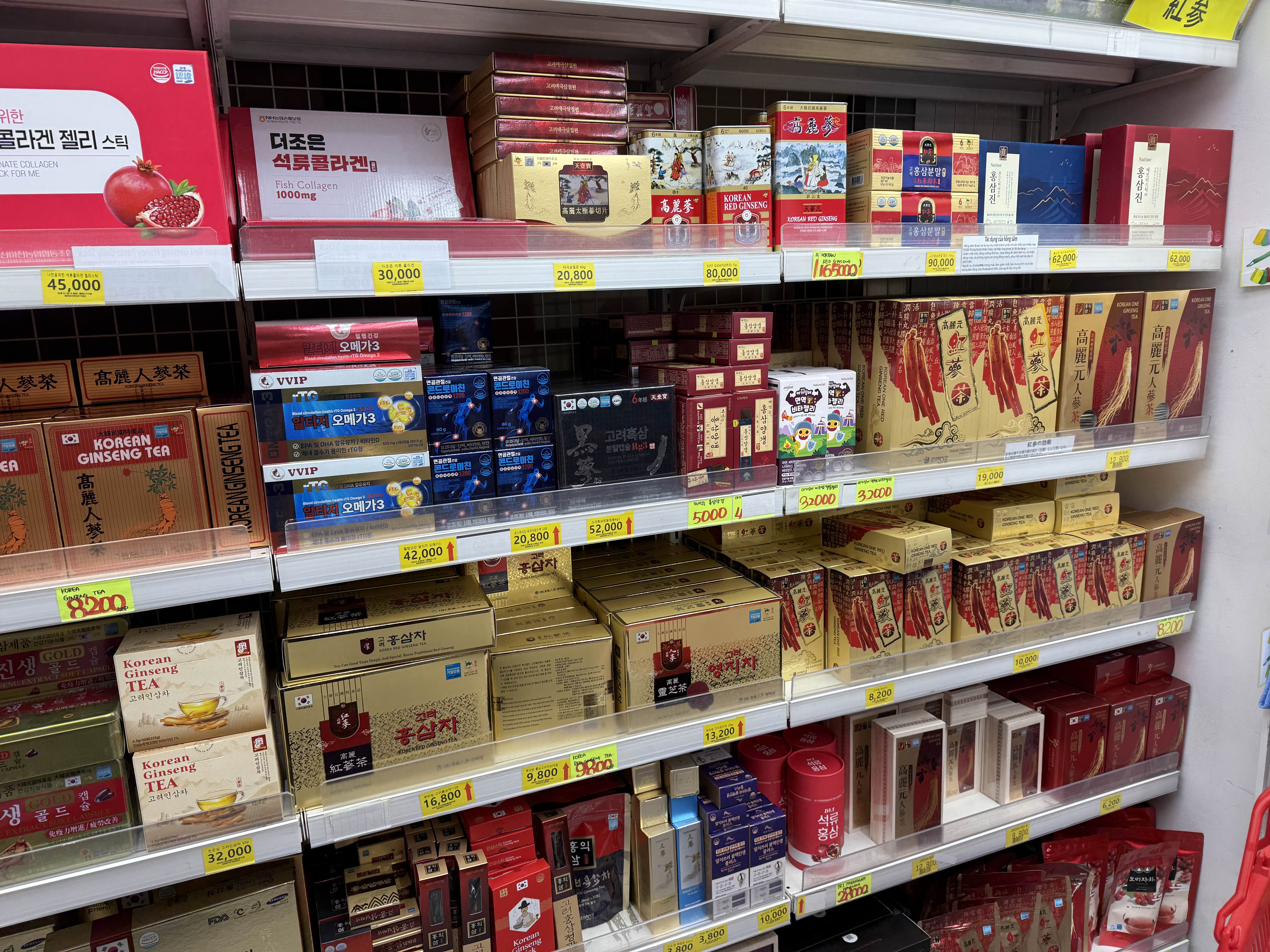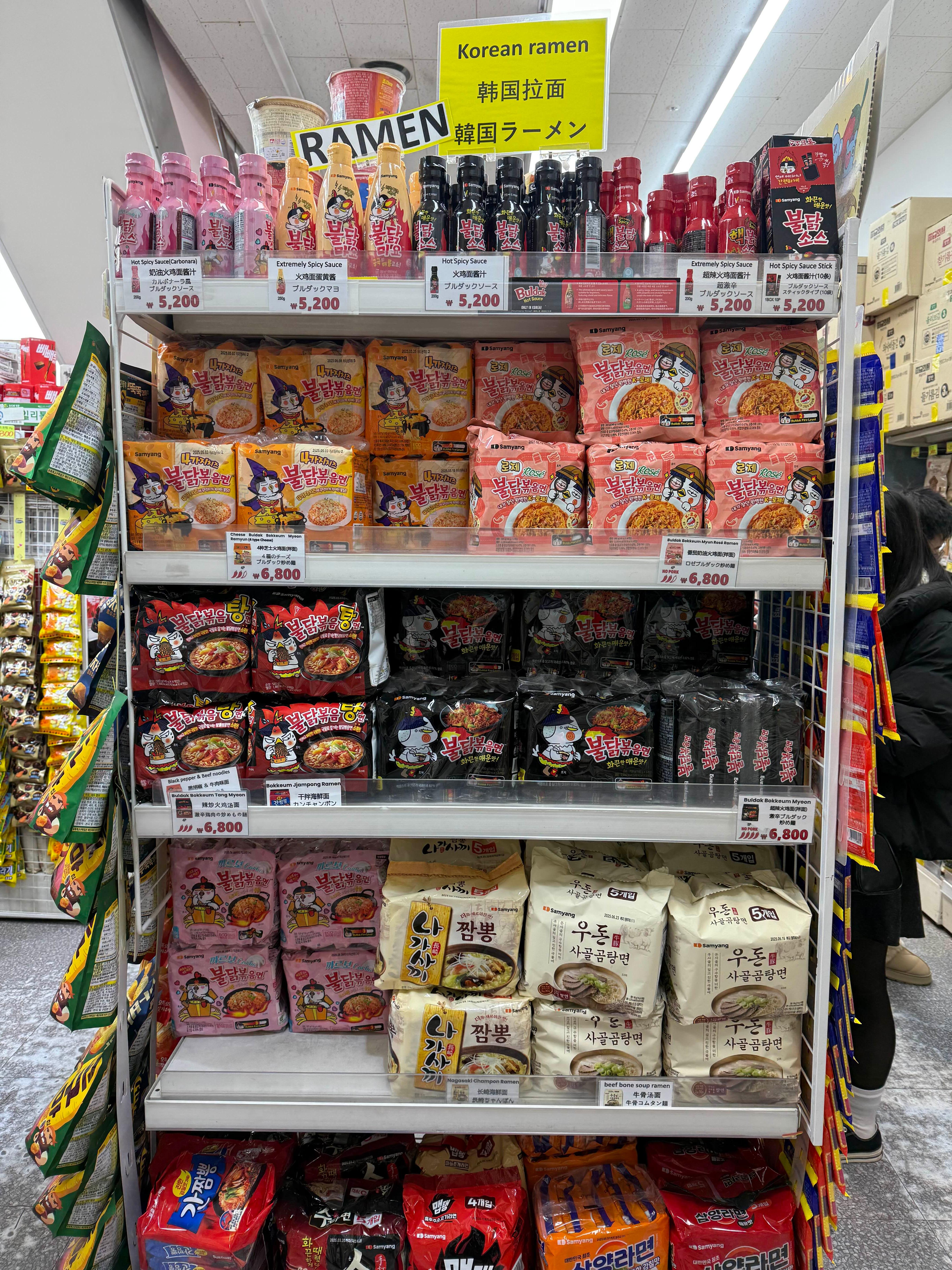 김, 과자, 라면, 홍삼, 약과 등등 외국인들이 선호하는 정말 많은 종류의 한국 식품들이 있다. 웬만한 일반 마트보다도 없는게 없는 것 같은 느낌. 일본인들에게 빙그레 바나나우유가 인기라는 얘기를 언뜻 들었는데 정말로 바나나우유가 엄청 쌓여있어서 놀람.