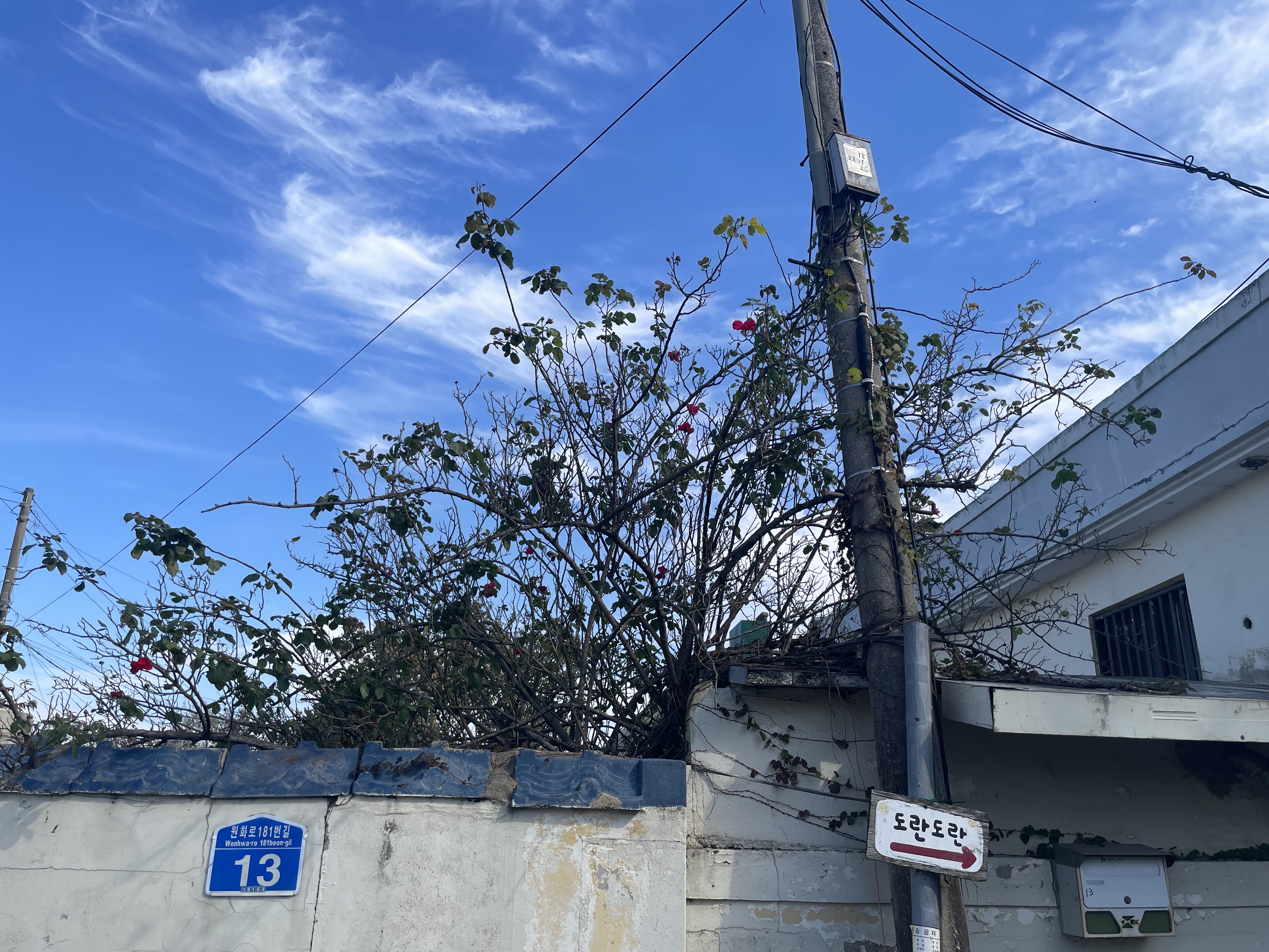 대릉원을 나와 일명 황리단길 가는 길. 하늘이 정말 예뻤다.