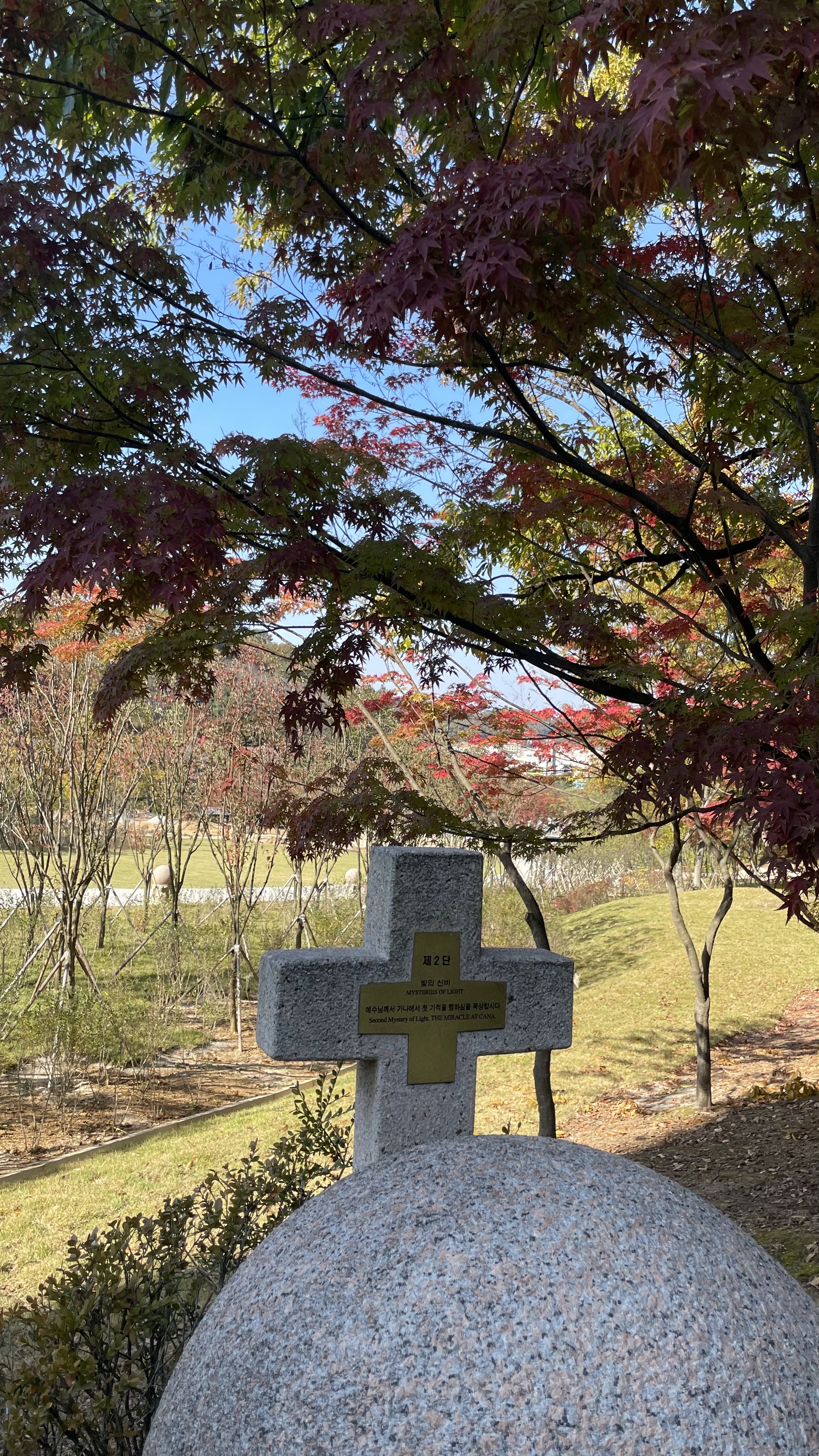 커다란 묵주돌들이 길을 따라 세워져 있었다. 사이사이 붉게 물든 단풍나무의 전경이 아름다웠다.