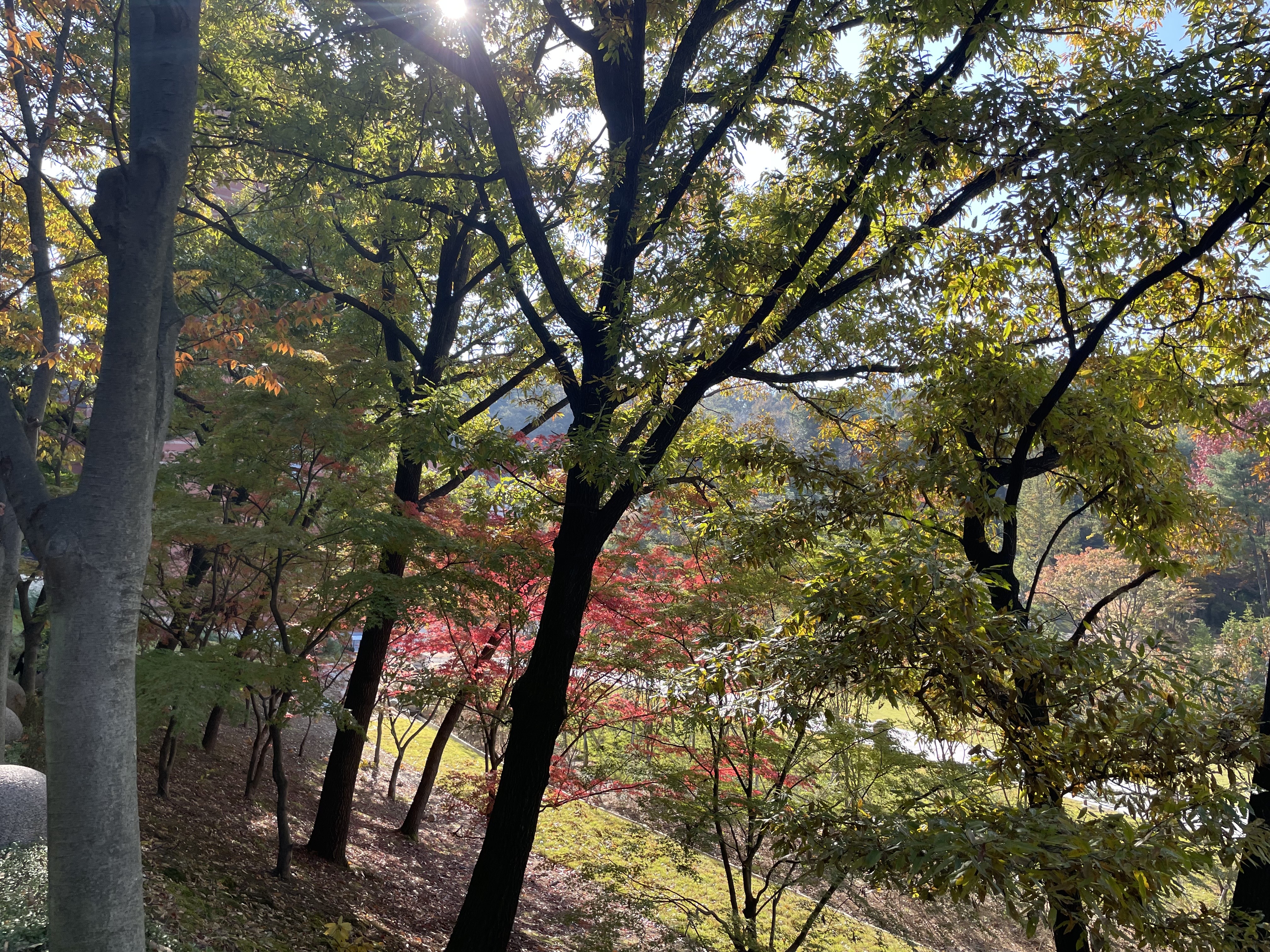 군데군데 단풍이 울긋불긋 들었다. 너무 예뻤던 단풍나무. 아직은 조경 공사 중인지 펜스가 쳐져 있는 곳도 있다.