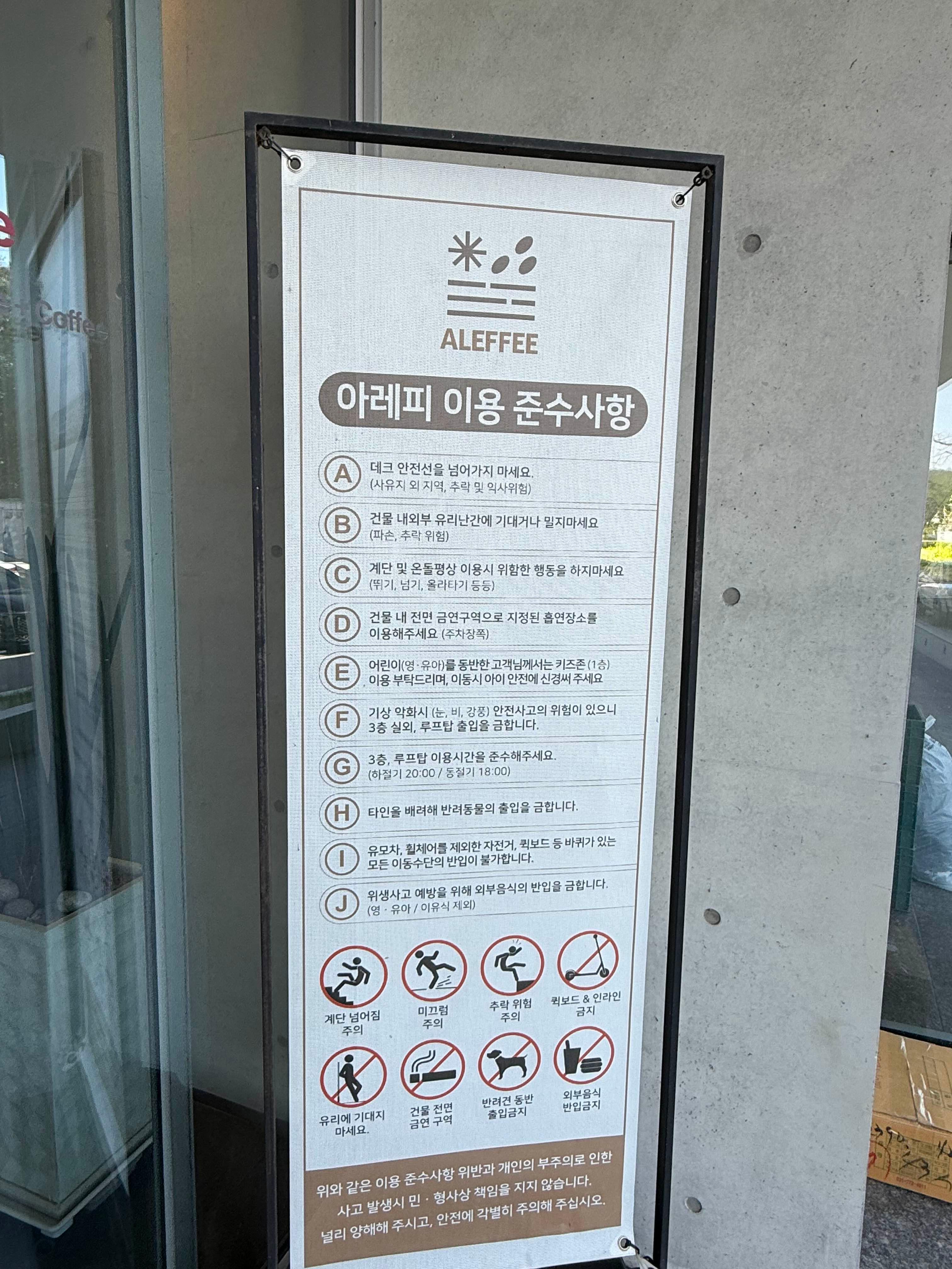아레피에 입장하려고 하니 보이는 이용 준수사항들.