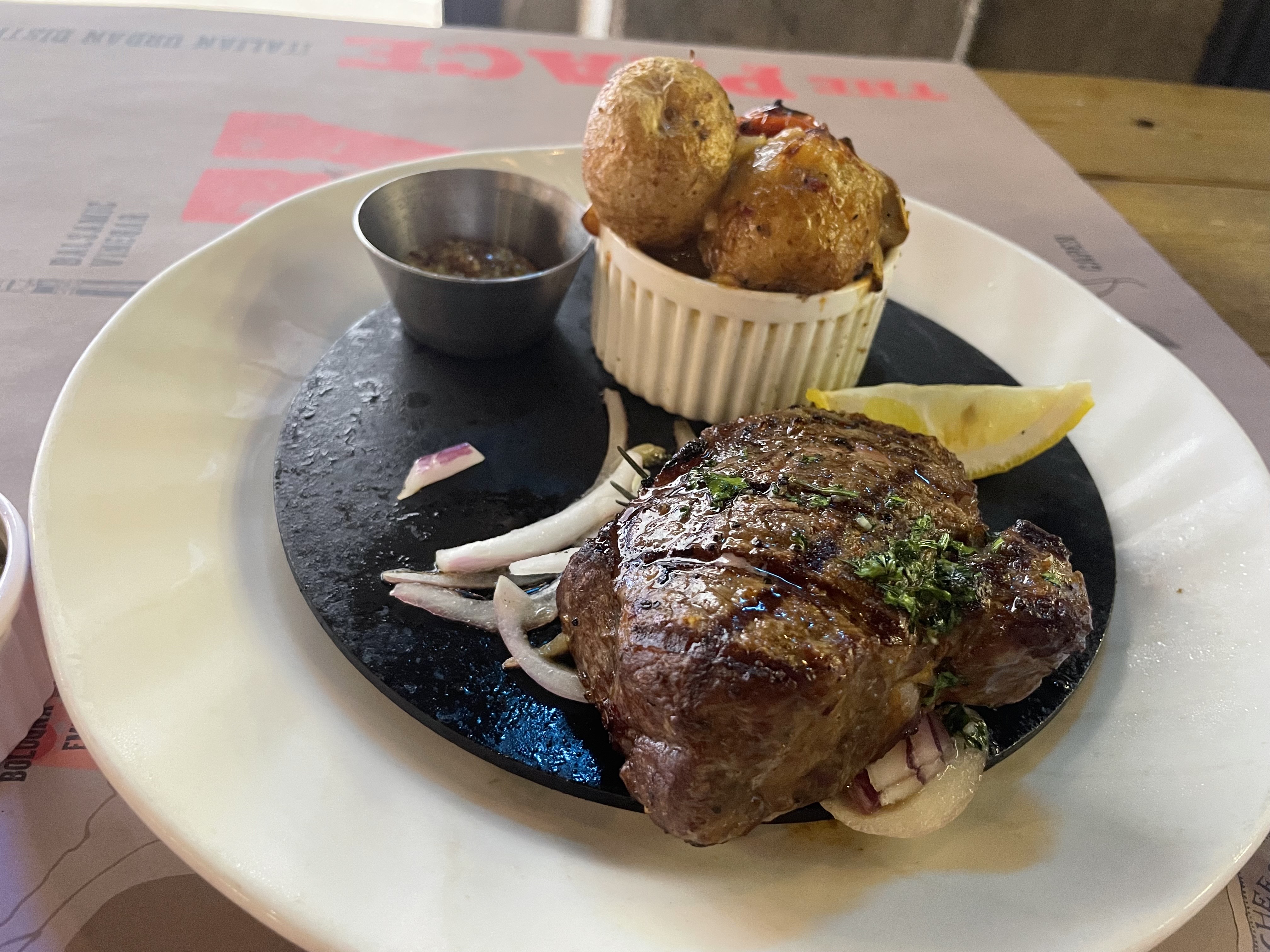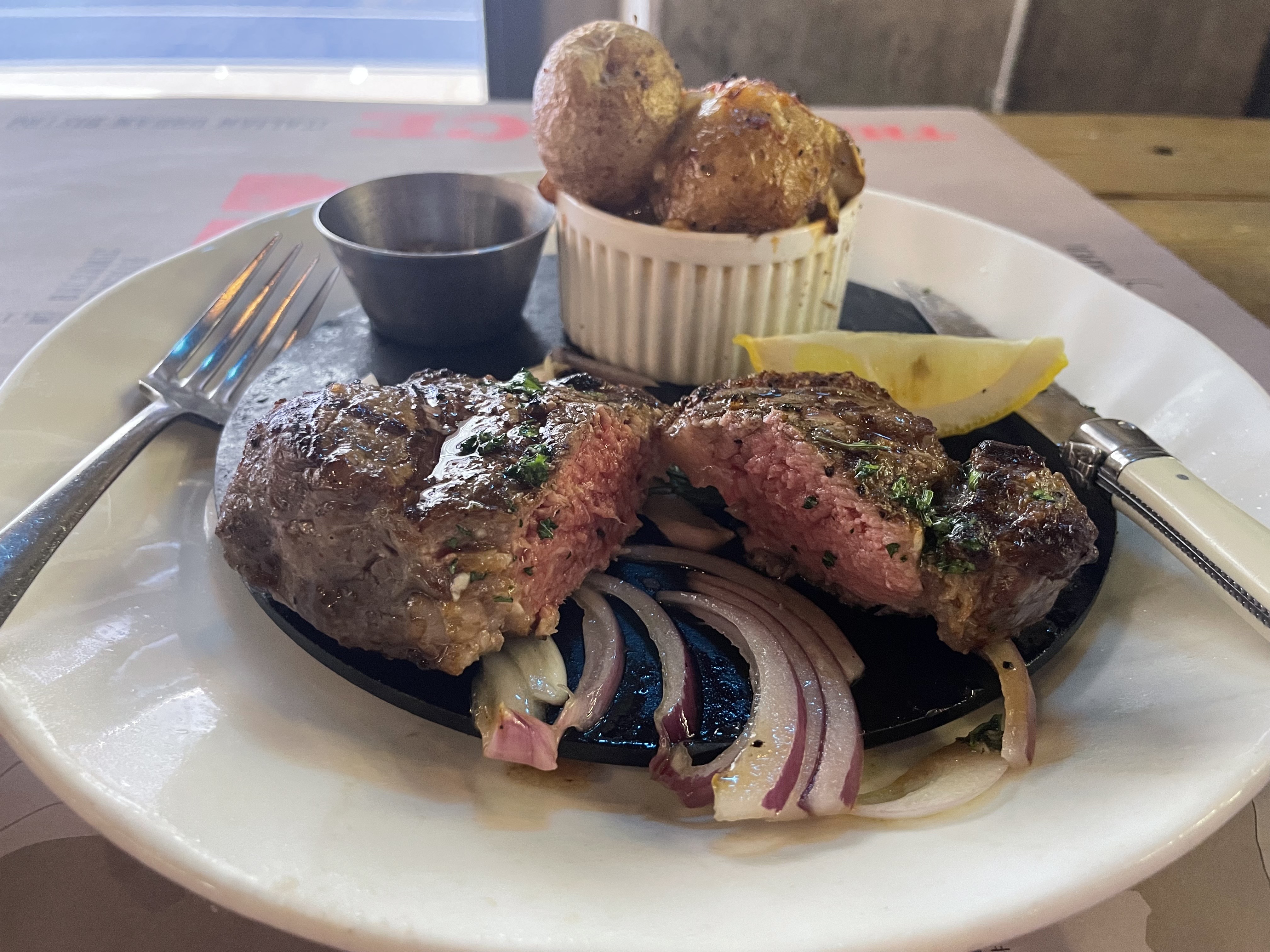 스테이크는 미디움으로 주문한게 잘못이었는지.. 너무 질겨서 다 먹지 못하고 좀 남겼다. 씹다가 뱉기도 하고ㅠㅠ