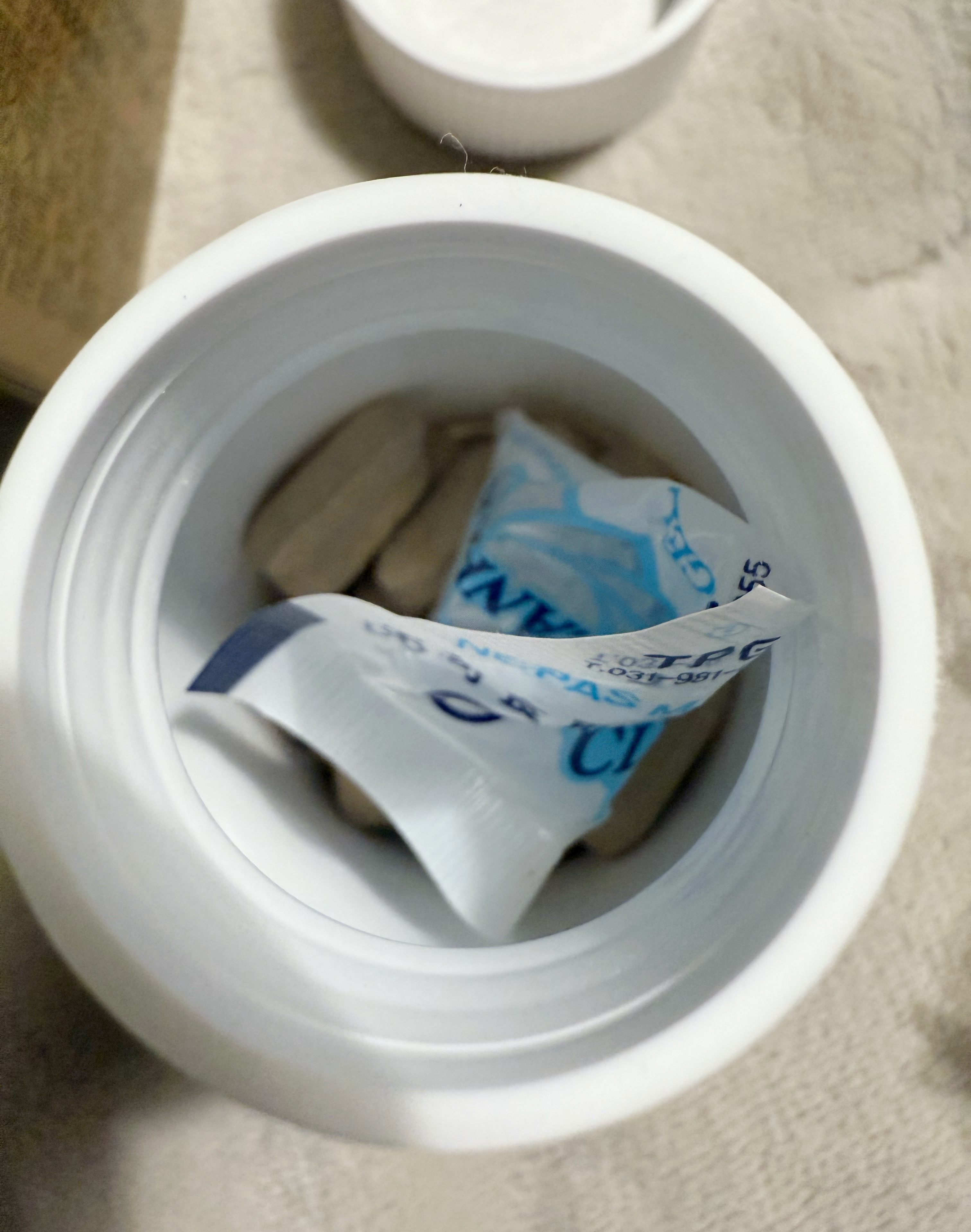 안에 습기제거제와 타블렛 알약 30개가 들어있다.